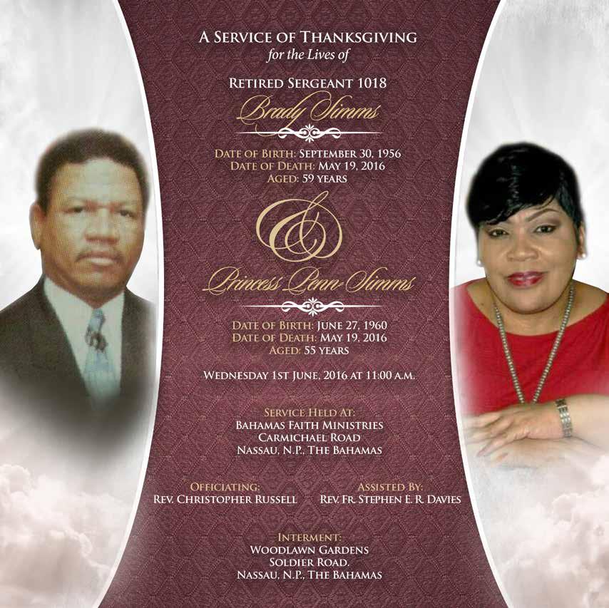 Pauline Lightbourne, Alton & Christine Mckenzie, Lathera, Latara Dana & Family, Jimmy & Gail Davis & Family, The Nassau Village Community, Management & Staff of Supreme Court, Commissioner of Police Ellison Greenslade and The Royal Bahmas Police Force, Police Reserves, Gaming Board Enforcement Department, Blunsheba Miller, Lionel Penn, John Penn, Lee Penn, Dayna Wilson, Christine and Bethsheba Lightbourne, Hon. Obie Wilchcombe, Rt. Hon Perry G. Christie, Rt. Hon Hubert A. Ingraham, Justice Bernard Turner, Hon. Vincent Vanderpool Wallace, Ron O. Pinder, Dion Smith, Diedre Maycock, Registrar General Department, Rev. Melvin Grant, Rev. Robert McKinney, Adrian Fox, Paul Robinson & Family, Dino & Karen Josey, Norma & Emmitt Farrington, Norma Fynes, Terry Ward, Marion Astwood, Edward & Fredrick Anderson, Diana Ferguson, Terria Butler, Desire and Emily Robinson, Ricardo Neely, Sir Durward Knowles, Nakeisha Humes, Bernadette Morris, Caroline Williamson, Nadia Brown, Margaret Newbold, Naomi Wood, Gaynell Dames, Audrey Demeritte, Meconald Penn, Tracey Charlow, Monique Dawkins, Wellington Smith, Claudette Whyms, Davio Rolle, Michelle Ritchie, Stanley Bernard (Gloria) Leamshould & Bernadette Morris, Kaysa Hanna, Demiko Hunter, Michael Fernander, Althea Smith, Michelle Webb, Shanta Goodman, Kenny, Brendia Bain, Dellareese & Cheryl Grant, Rossmarie Moree, Queenie Newton, Georgette Stubbs, Karen Russell, Charles, Virginia and Bridget Outten, Carla and Bernard Minnis, Alice, Monika and Cahrles, Grant, Natasha and Prescott Wallace, Lee Peen, Sharmaine, Sharvonne and Dr. Sheema Smith, Prince and Princess Cornish, Rose Hanna, Ketchner, Clement, Agatha and Peggie Penn, Eunice an Lucy Penn of Florida, Anne Penn, Elizabeth Smith, Queenie Hanna-Newton, Deloris Lightbourne, Alecia and Nathaniel Morris, Dorothyia and Peter Norman of the U. K., Heartlyn Moss, Pauline and Bethsheva Lightbourne, Christine and Lance Darville, Ina Smith, George II and Sheryl Smith, Ester and Nolan Dorsette, Bobby Lightbourne, Robert and Vallie Stubbs, Sherika and Sheryl Penn, Wally and Robert Stubbs, Joyce Pinder, Keith Coakley, Terrance Mackey, Elivita Black, Rev. Fredrick McAlpine, Sade Evans, Nadia and Clement Penn and a host of relatives and friends too numerous to mention.