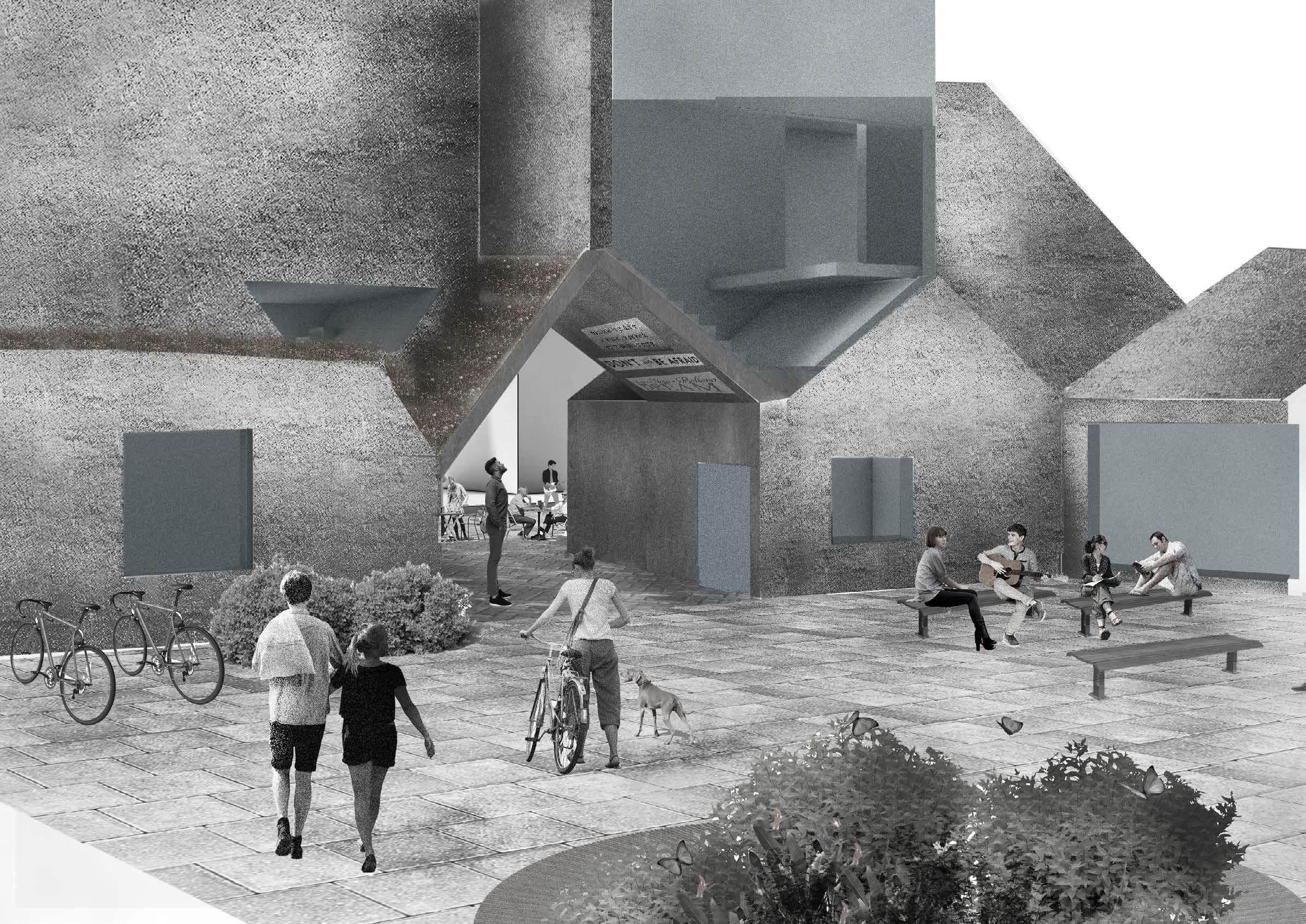 Fig. 40 Concept plan Fig. 42 Exterior padestrian view Fig. 38 Concept masterplan Fig. 41 Building section facing east