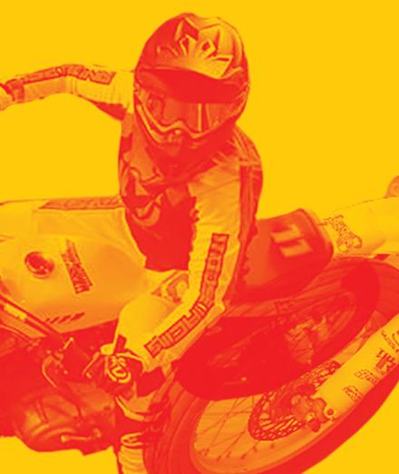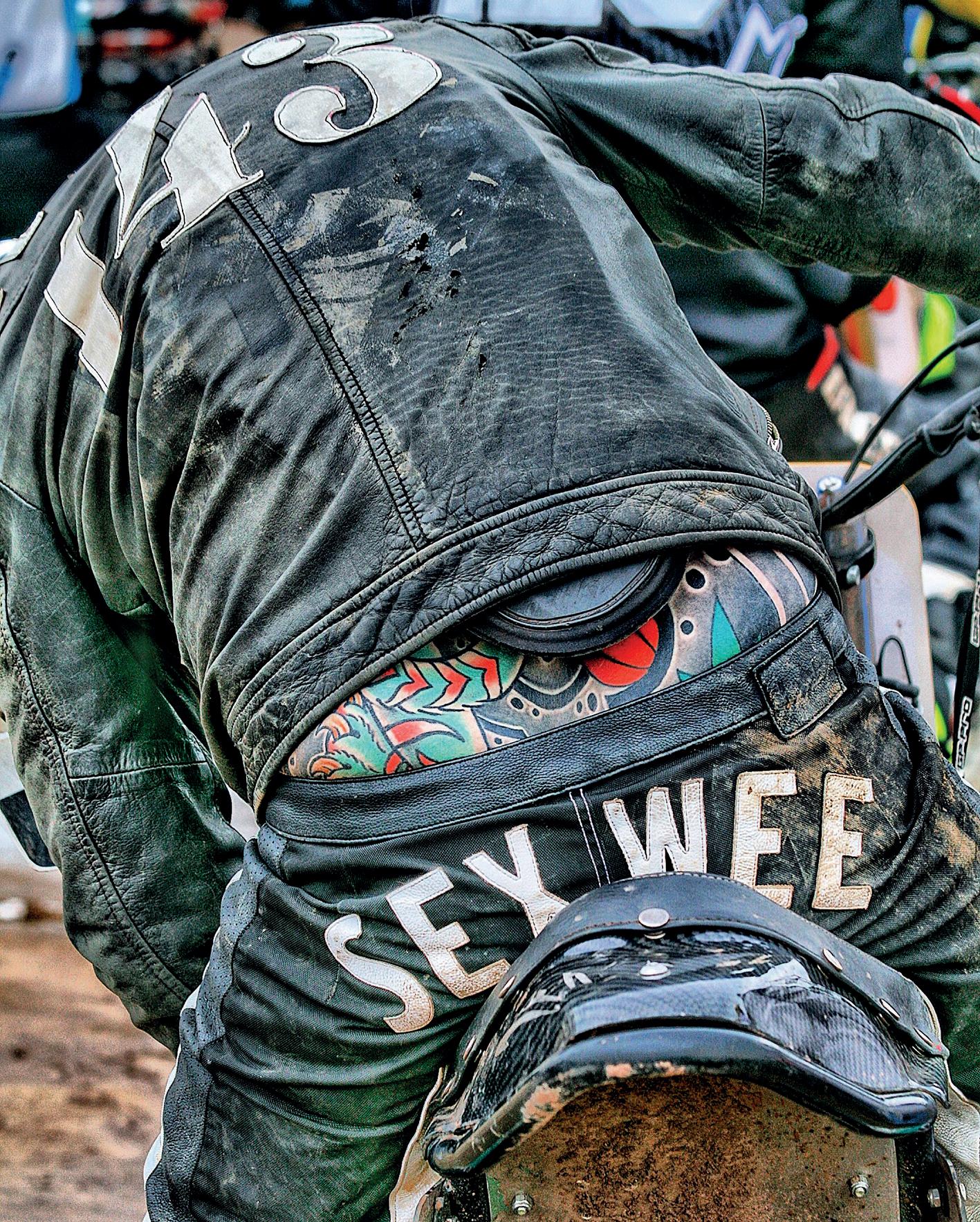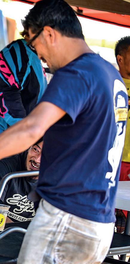 invested in the sport, whether racers or promoters, what would be the one thing they’d change if they had a magic wand? I guarantee no one has given the same answer as Scott: ‘Glow sticks on the bikes would be spectacular for the night races. On the rims and under the bikes. More light!’ begs the photographer. ‘But as long as the bar bangin’, rooster dodgin’, high slidin’, corner cuttin’ and wheel tappin’ continues, I wouldn’t change a thing. I have never before experienced a community of athletes that help one another competitively, sharing ideas, parts, and life on the road.’