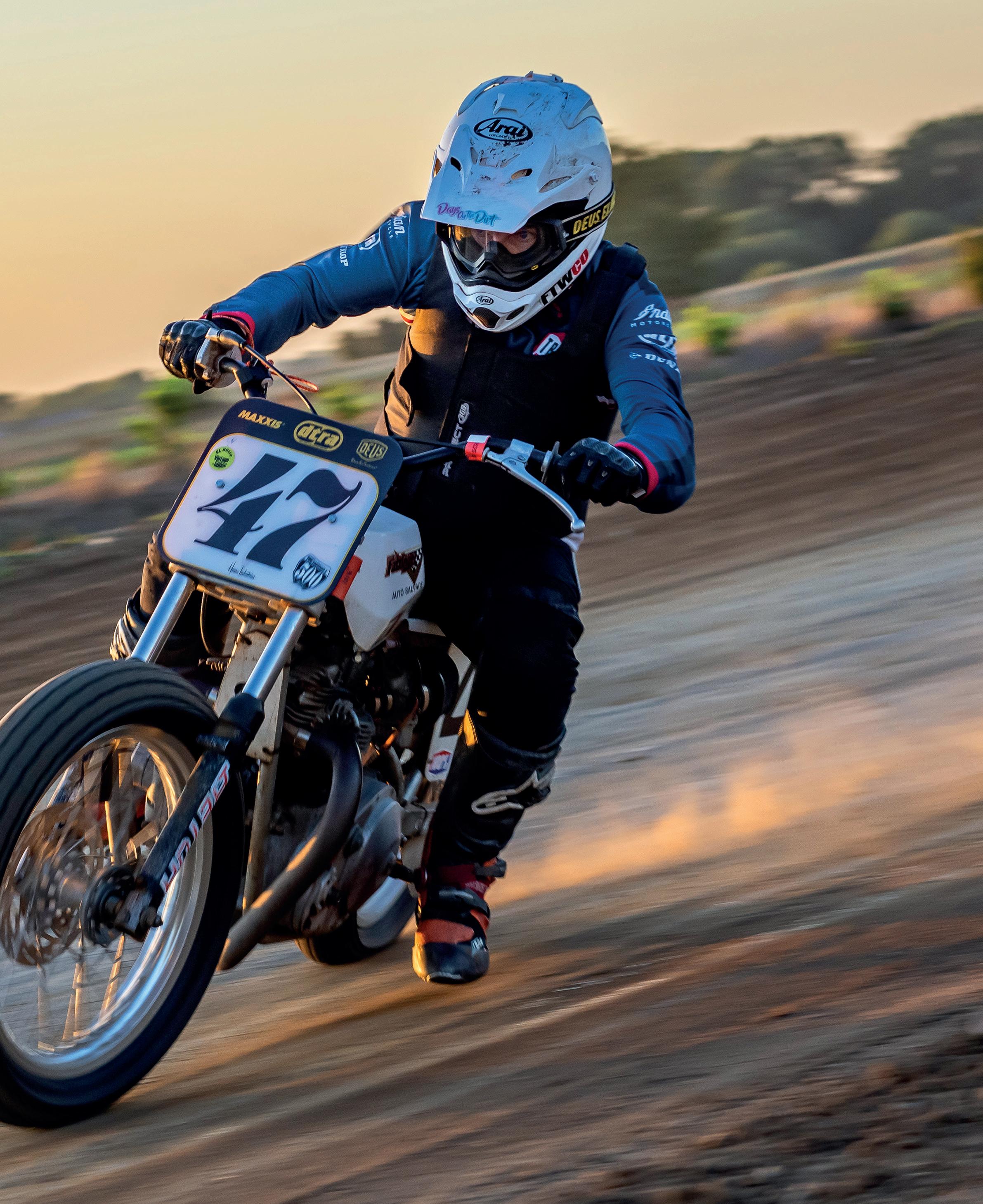 Growing up, my father was a car racer and mechanic. He wanted to share his love of going fast with his kids, resulting in getting my brothers and me dirt bikes. Coming from a dirt track car racing background, he naturally got us into racing flat track.