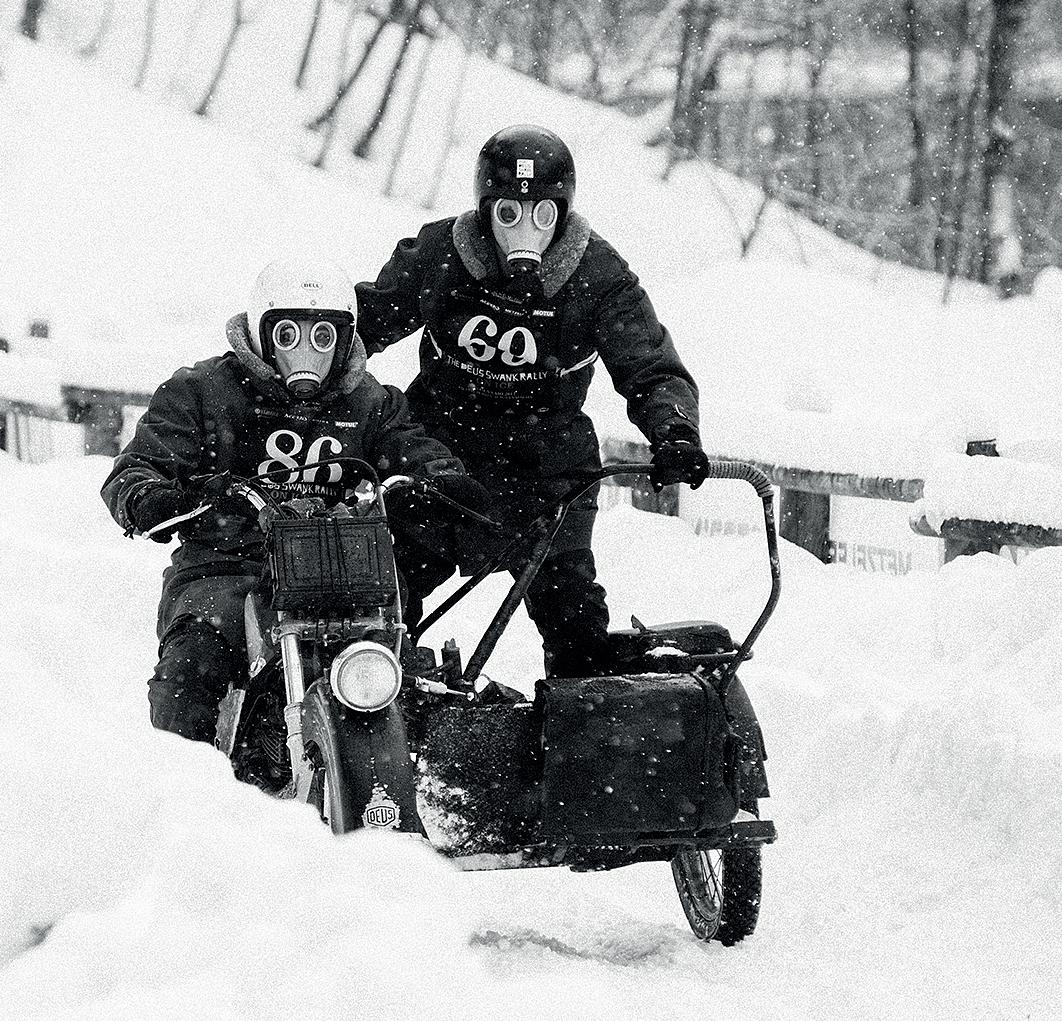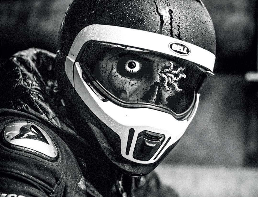 clockwise from below: The Pangi Valley road, Himachal Pradesh, India, has been labelled the most dangerous in the world. That’s before it snows. Harsh Man Rai captures his friend Jamshed as they consider their life choices; Chris Moeller flat out on Biltwell’s Sportster, Frijole 883, racing across Baja, Mexico, by Geoff Kowalchuk; Ed Subias’s clever self-portrait, Trona, CA. The camera is on a tripod, with the interval timer set to shoot every five seconds; Harrison Mark frames his friends through the bars of a Deus Customs Yamaha Scorpio in Bali
