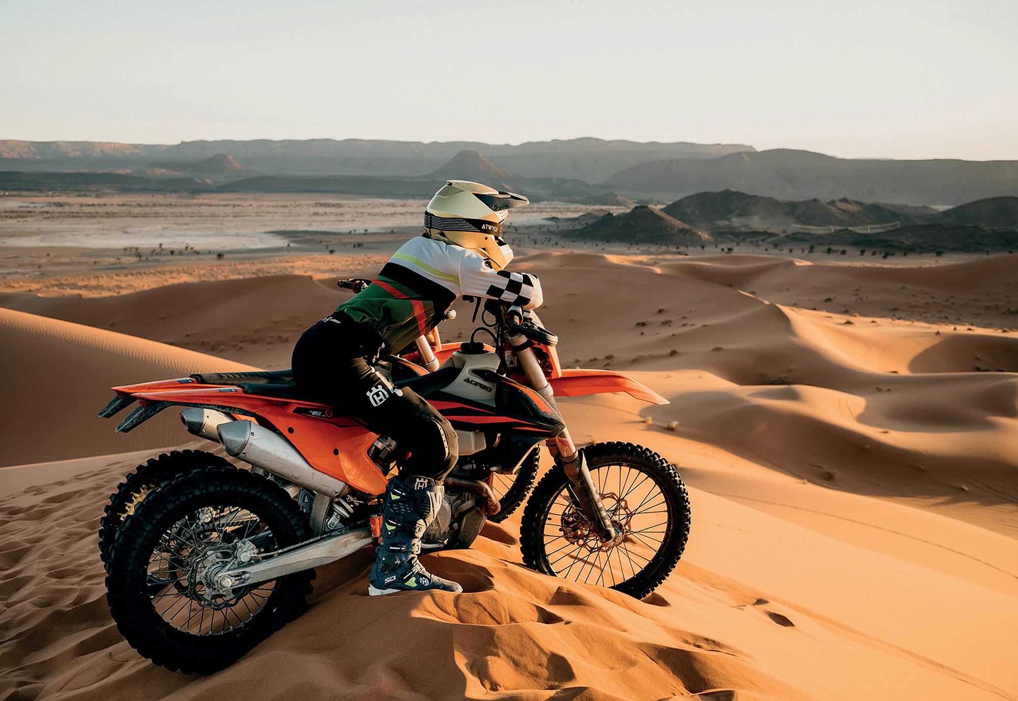 clockwise from top left: Deserts are great, there’s not to much crash into. The thing is, if you do find something to hit, it’s a long crawl to the nearest ER. Keiran caught sand stormin’ in South Africa by Grant Evans; Jo Hecht on his classic Husqvarna 400 Cross in Anglet, France, by Kayadaek Photography; Spencer Burback bombing a fire road on Mt. Hood, Oregon, by Gregor Halenda