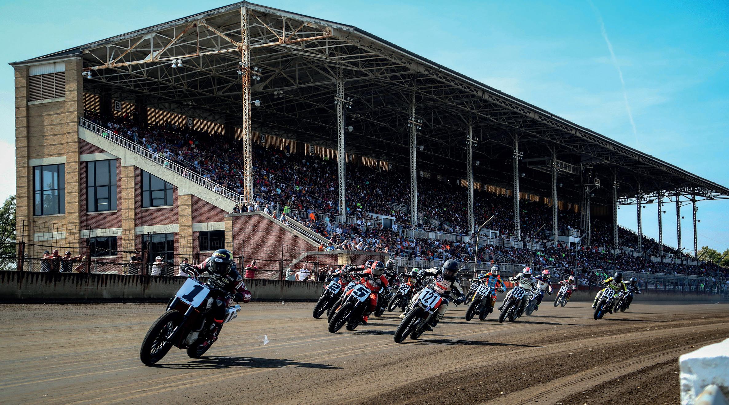 Below: Springfield Mile, 2017, Jared Mees leads the pack into the iconic composition on his way to the main