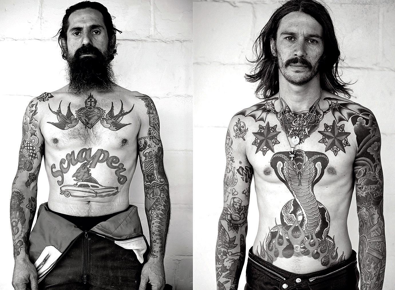 clockwise from top: Hermann Köpf self-portrait, Parchim, Germany; Bart Verstijnen on his Yamaha RD350YPVS/XT500 hybrid at Lelystad, Netherlands, by Mark Meijering; Nicolas Prado says, ‘Fred is the best dancer and I got him tattooed on my leg in memory of my first report as a professional photographer; Traction by Yve Assad; Chad Cose, 2017 Sacramento Mile, by Jodi Johnson