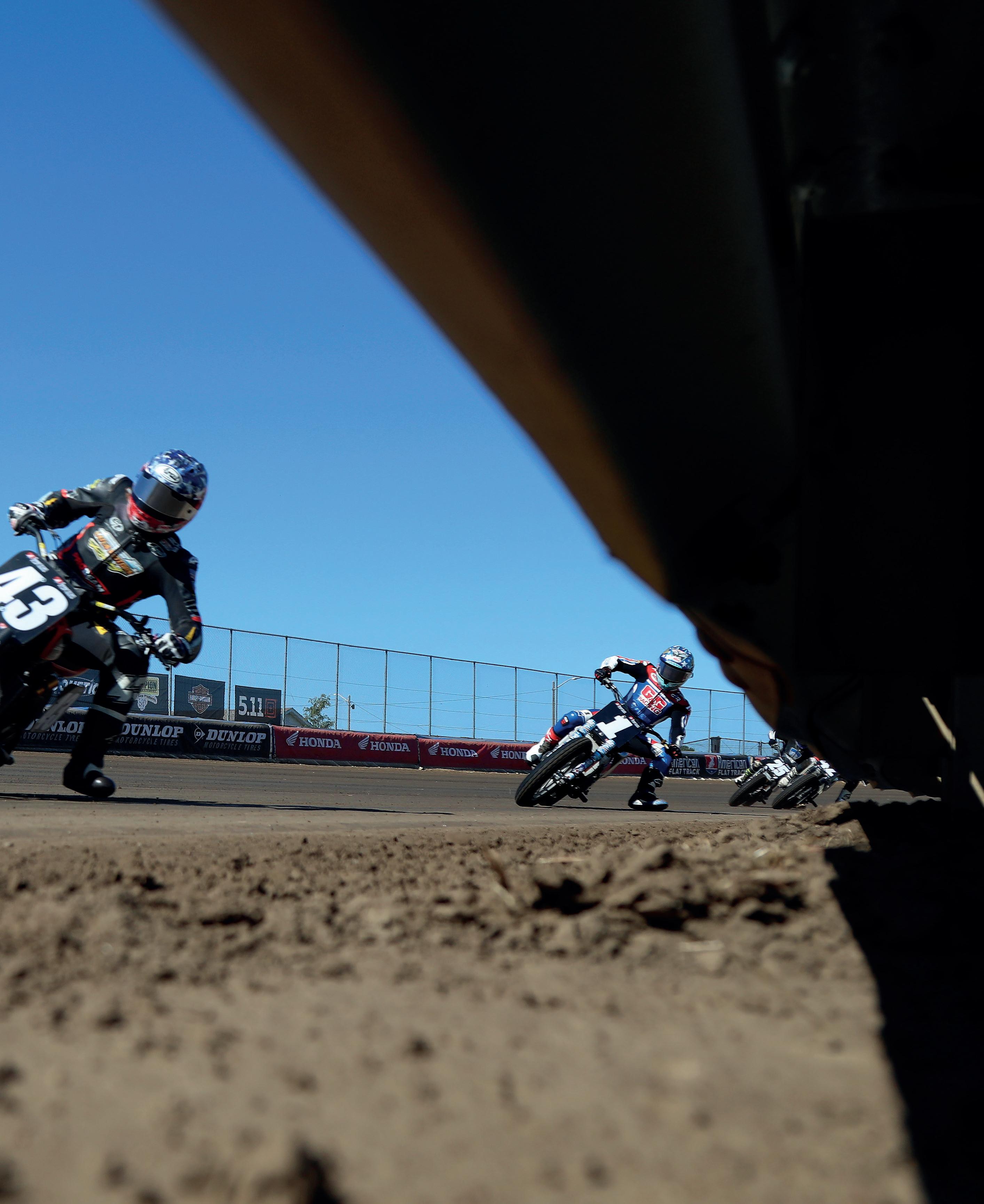 Flat track racing is a thrill. Some see it as just a sport, but for me it’s a way of life. I love the adrenaline and friendly competition of racing. Yes, I could get on the street and go fast, but being in a safer space that demands full concentration is what I prefer. There have been scary times racing and always the risk of getting hurt, but it’s the risk I take to chase what I love. Racing and the motorcycle industry have become a huge part of my life.