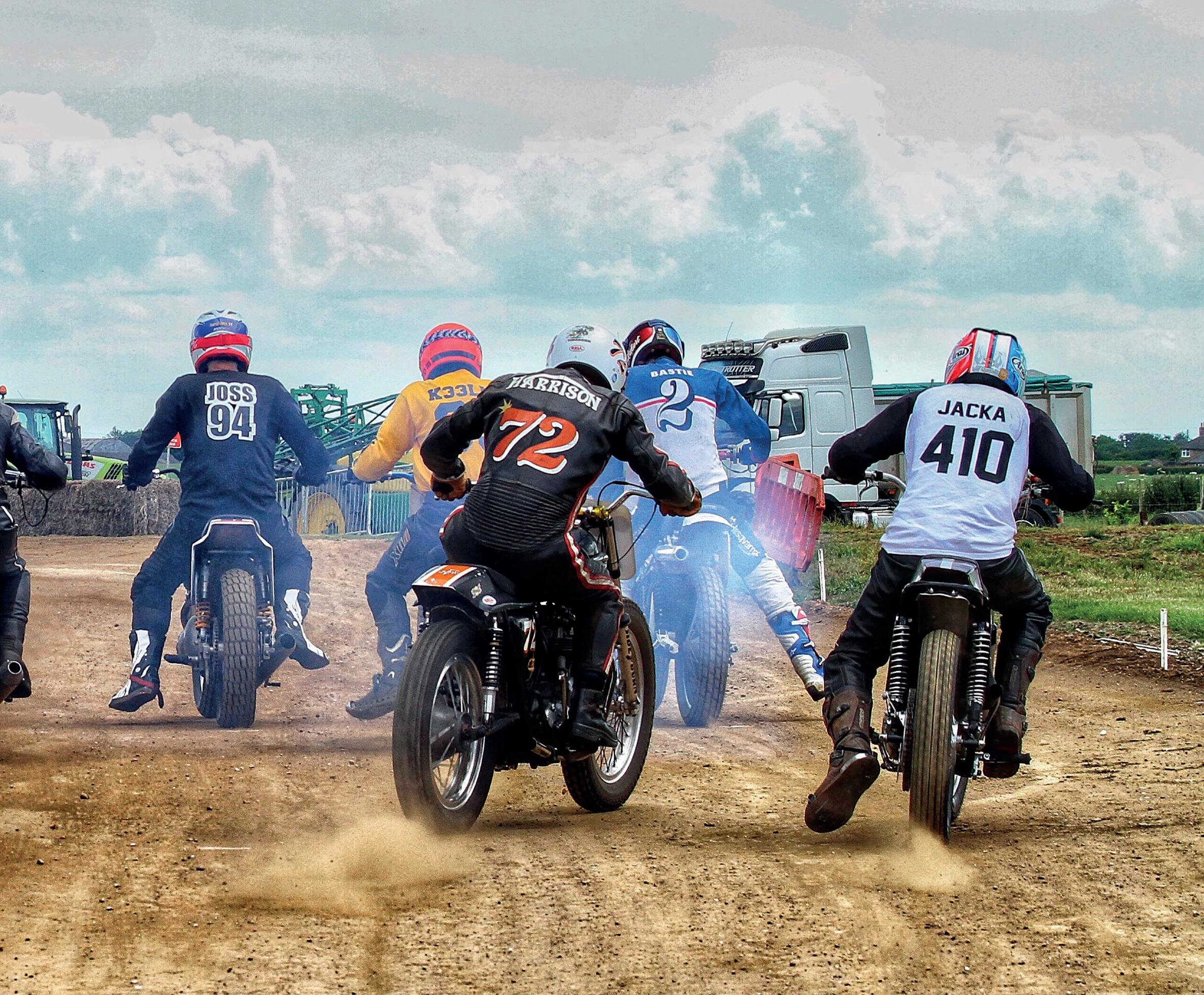 In those early days, UK dirt track was undoubtedly all a bit weird. The majority of other racers came from other disciplines such as supermoto, speedway and motocross, because there was no local history of the sport to draw on. Everyone had raced some type of motorcycle previously, except me. I would not, even now, describe myself as a motorcycle racer, rather a rabid flat track worshipper who wrote in to Jim’ll Fix It1 in an effort to scratch a lifelong itch.