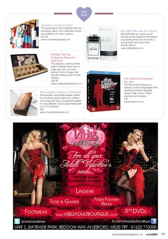 For Him Cashmere Football Scarf The perfect gift for the football fan who has everything, these 100% cashmere scarves are available in 30 colour options. £44.99 www.notonthehighstreet.com