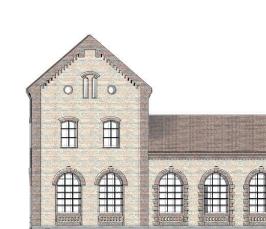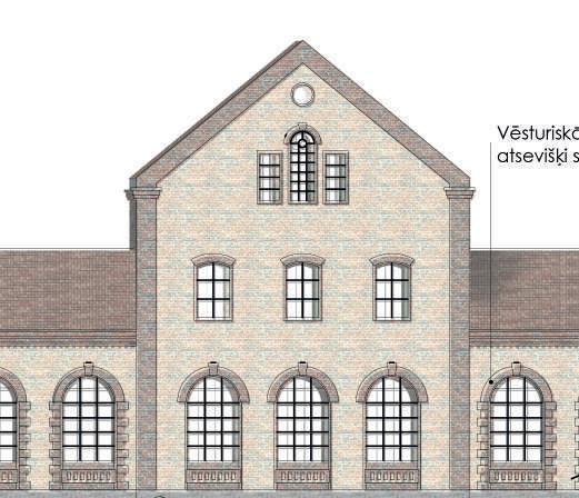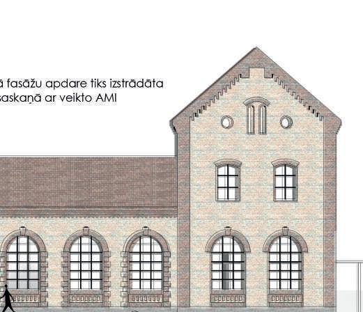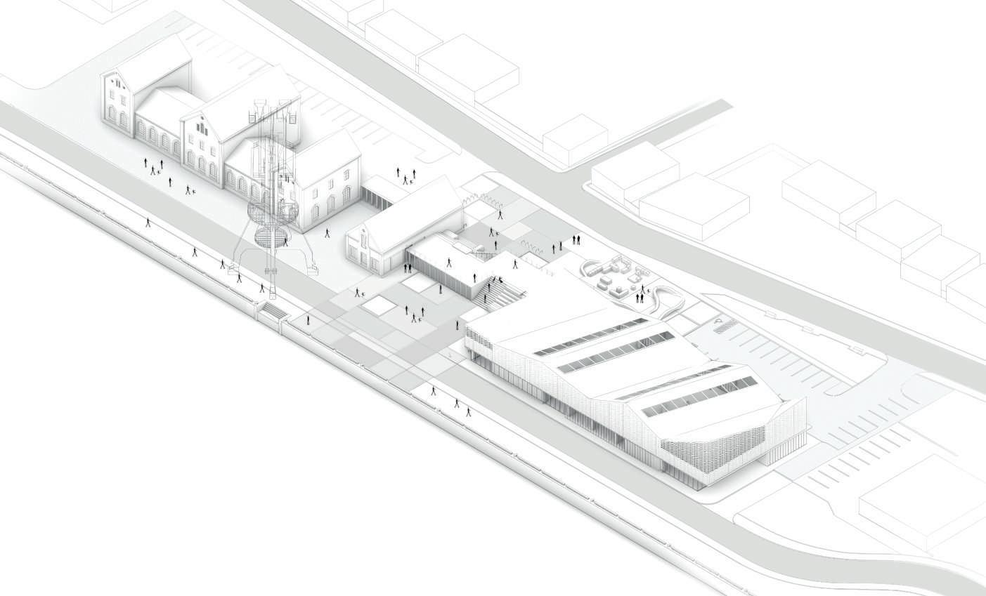 Esošo ēku izmantošana – vēsturiskais darbnīcas un smēdes apjoms tiek atjaunots pēc arhitektoniski mākslinieciskās inventarizācijas 20.gs. sākuma vizuālās rekonstrukcijas, iespējami atjaunojot vēsturiskās ailas un izmantojot tās kā sav ienojošos elementus jaunbūvējamām galeriju piebūvēm. Jauniešu centram, saglabājot esošo kolonnu tīklu tiek izveidots jauns apjoms – atvērts pret ielas fronti pirmā stāva līmenī un izveidojot sasaisti ar vēsturiskajām ēkām izmantojot stilizētas divslīpju jumta plakņu formas.