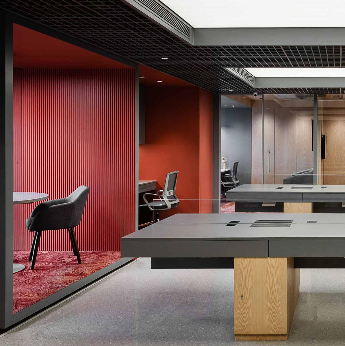 False ceiling aligned to beam soffit using 12mm thk. gypsum boarding suspended on GI framing and finished with internal grade paint