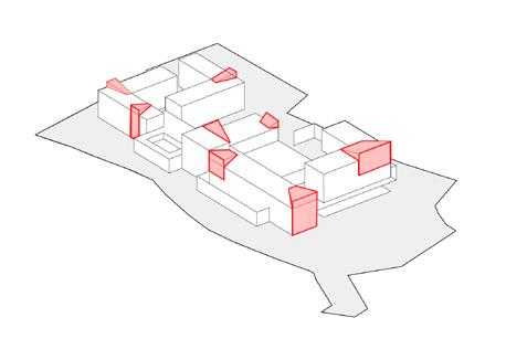 Where the grid meets the existing contexts, it disintegrates in different ways to generate new condition that can house various different public amenities.