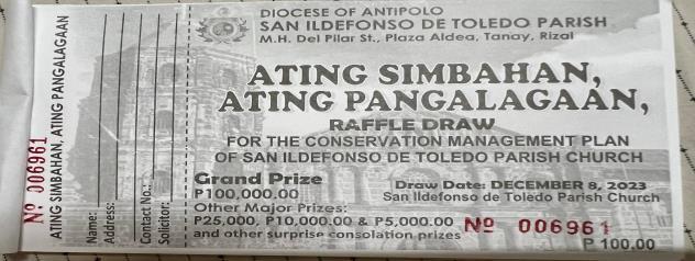 In a remarkable demonstration of communal support and shared dedication to the preservation of cultural heritage, the Parish of San Ildefonso de Toledo embarked on the "Ating Simbahan, Ating Pangalagaan" Fundraising Program This innovative initiative, executed through an engaging Raffle Draw, sought to secure funds for the creation of the parish church's Conservation Management Plan a vital step towards ensuring the continued safeguarding of its architectural and historical treasures.