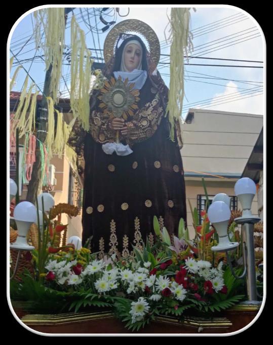 A procession by the devotees to honor St. Claire of Assisi is an event being held every year This also features a 9-day prayer or novena prior to the main celebration