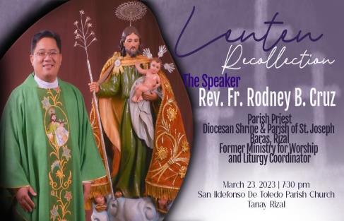 The Lenten Recollection held on March 23, 2023, featured Reverend Father Rodney Cruz as the esteemed speaker Father Cruz, the parish priest of the Diocesan Shrine of St. Joseph Parish in Baras, Rizal, delivered a poignant address, guiding attendees through moments of reflection and spiritual renewal. His insightful words provided a meaningful opportunity for participants to deepen their connection to the Lenten season and strengthen their faith journey