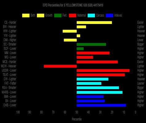 Moderate correct made very meaty bull. Very balanced level topped bull. Yellowstone puts a clean neat front on his off spring. Easy standout