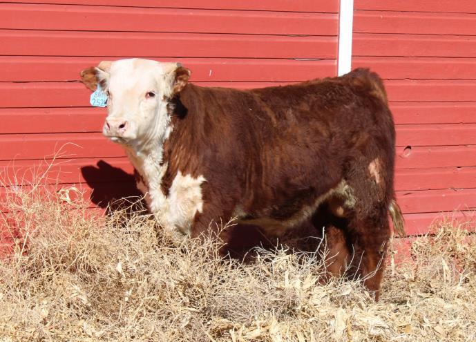 242K is a moderate made calf with a lot of style and correctness. He is super dark red and carries that crimson color up on the side of his face.