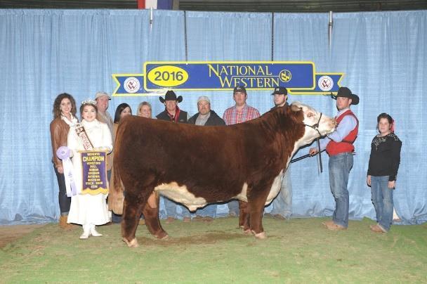 E133, “Snacks”, has proven to be a major player in the world of herd bulls Not only did he have an impressive show career, he has passed his depth and mass onto his offspring. He sired one of the bulls in our 2 time Reserve Champion pen of 3 bulls, and he is the sire to the reigning 3 time National Champion Horned bull owned by Barber Ranch and GKB Cattle. E133 is in the breeds top 1% in WW, YW, MG & top 2% in CW and CHB. Snacks passed away this last summer at the same time Bryan had all his major heart problems. We feel Snacks gave up himself to save our “boss man”.