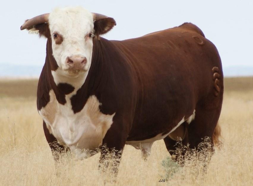 126 was a bull we raised and the final son of the great 4118 bull we had purchased from Harrell Herefords in Oregon. We had used 4118 heavily in our herd and retained many daughters. Once we had daughters in every pasture, it was time for him to move on. We sold our half to Rocking Chair Ranch in Texas, at the age of 6, They used him a few more years, selling many sons of his.