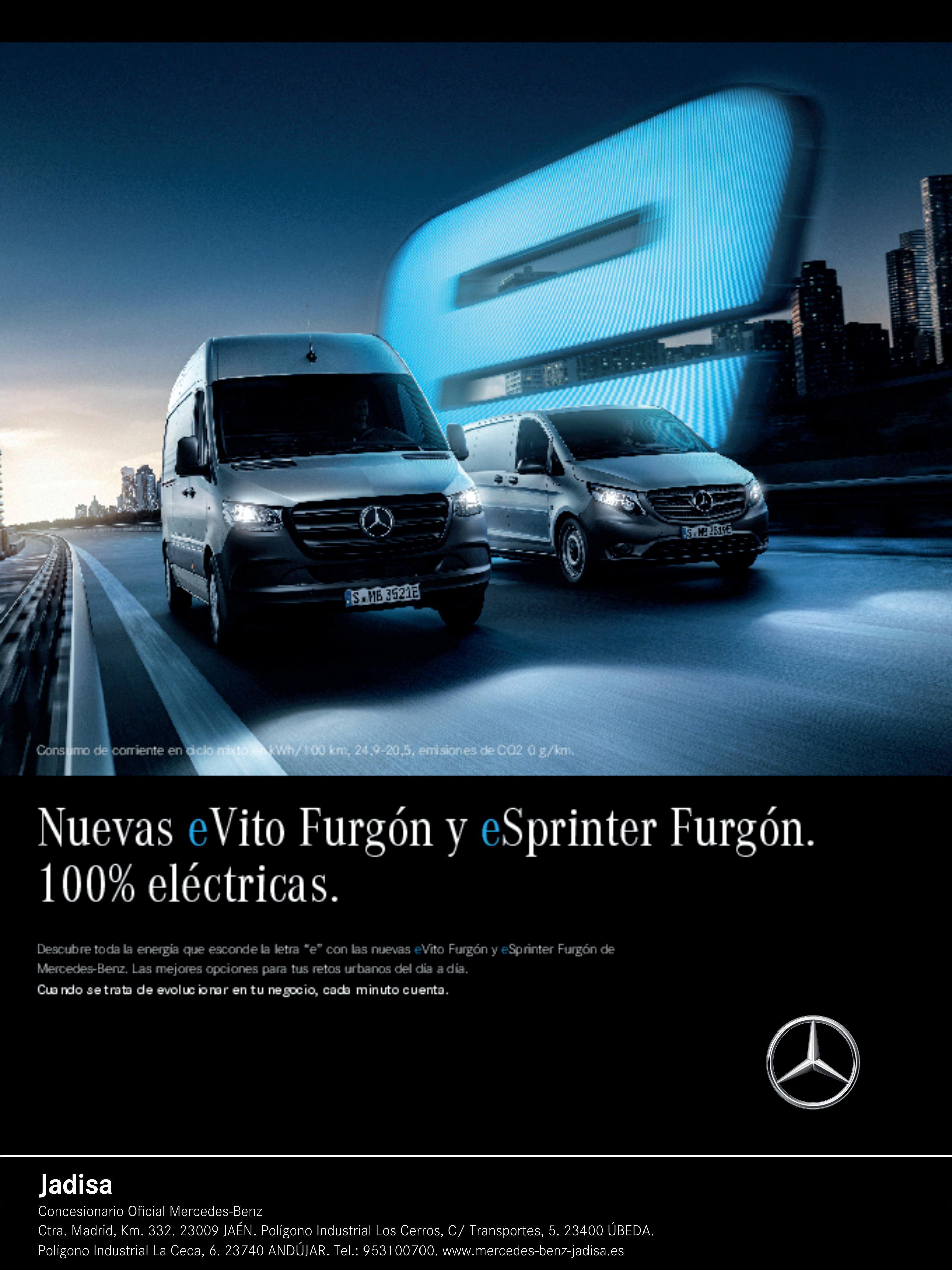 EQV. Nuevos horizontes para los nuevos tiempos. Descubre el primer monovolumen totalmente eléctrico de Mercedes Benz y explora un nuevo ocio en familia de la mano de la conectividad más avanzada. Porque para disfrutar de los tuyos, cada minuto cuenta. Concesionario Mercedes-Benz Crta. Madrid, km 332. 23009 JAÉN. Tel.: 953 100 700. C/ Transporte, 5. Pol. Ind. Los Cerros. 23400 ÚBEDA. Tel.: 953 10 09 59. Pol. Ind. La Ceca, 6. 23740 ANDÚJAR. Tel.: 953 107 752. www.mercedes-benz-jadisa.es