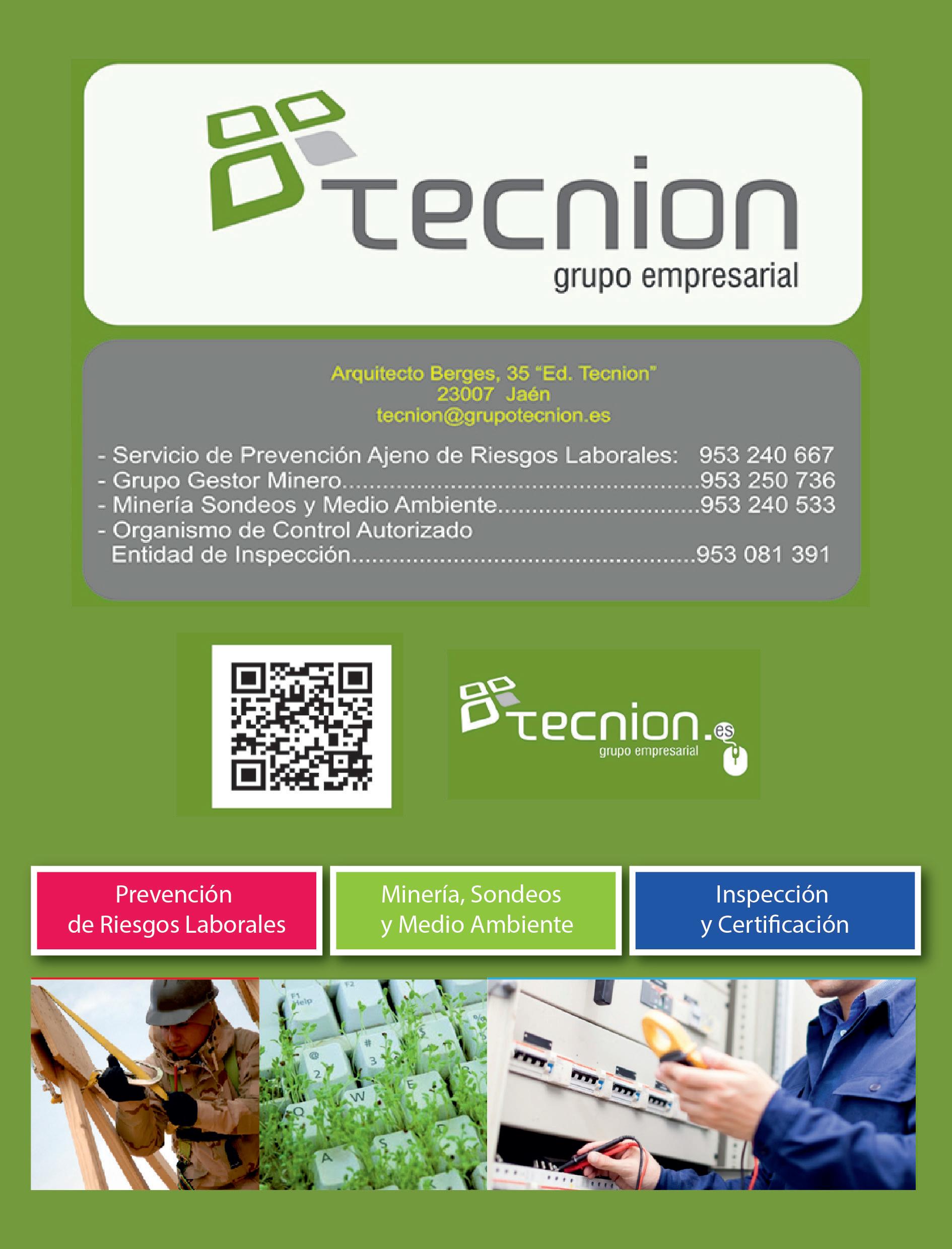 TECNiON Prevención de riesgos laborales, Minería, Sondeos y medio ambiente, inspección y certificación. C/ Arquitecto Bergues, 35 ”Edificio Tecnión”, Jaén. 953 240 667 / 953 081 391