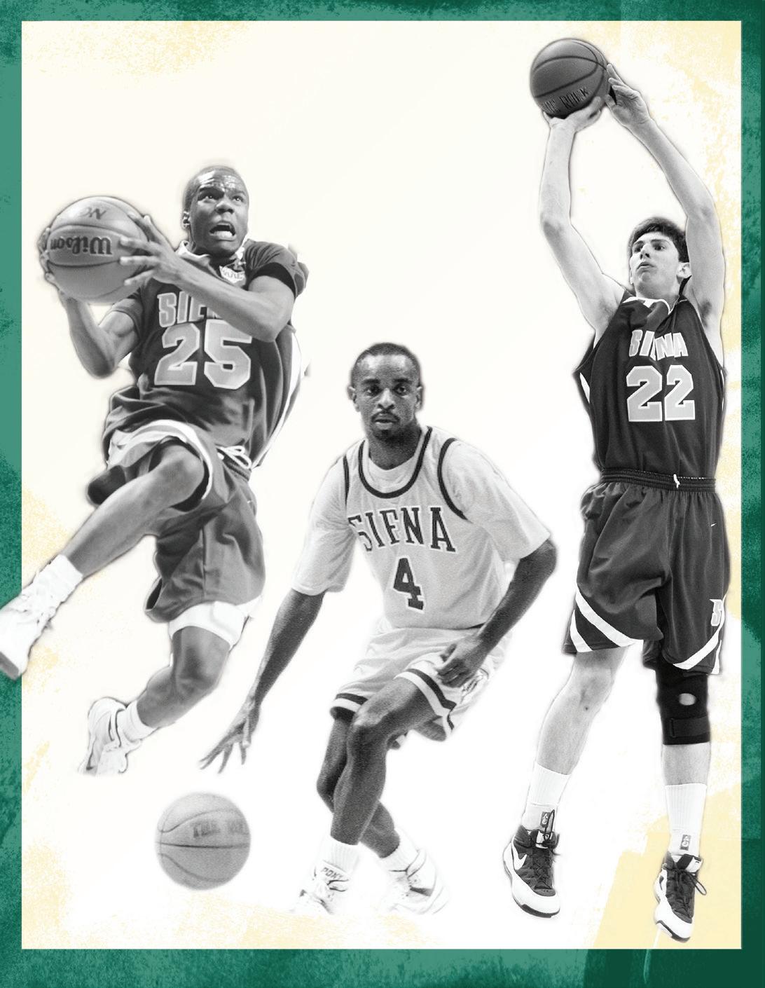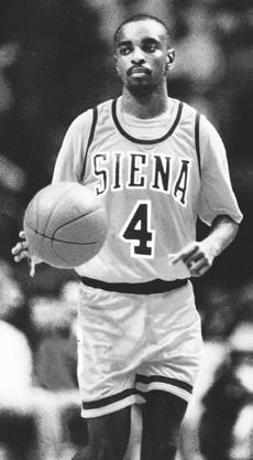 Tay “Firefly” Fisher ’08 delighted Siena fans for four years before moving on to a professional career with the world-famous Harlem Globetrotters Tommy Mitchell celebrates the Saints’ 2002 MAAC Championship Siena celebrates its 2014 CBI Championship Coach Paul Hewitt led the 1999 Saints to the NCAA Tournament