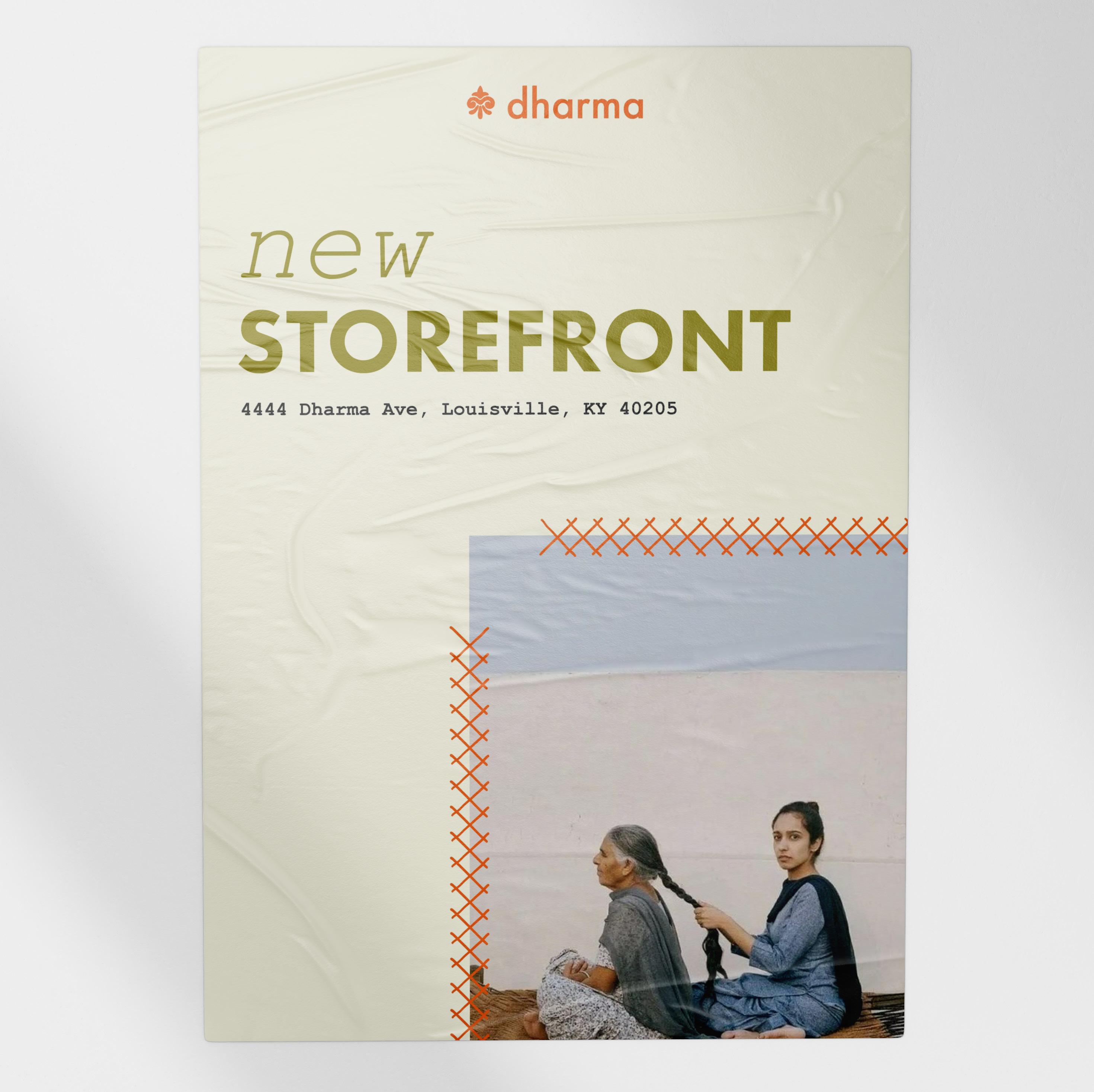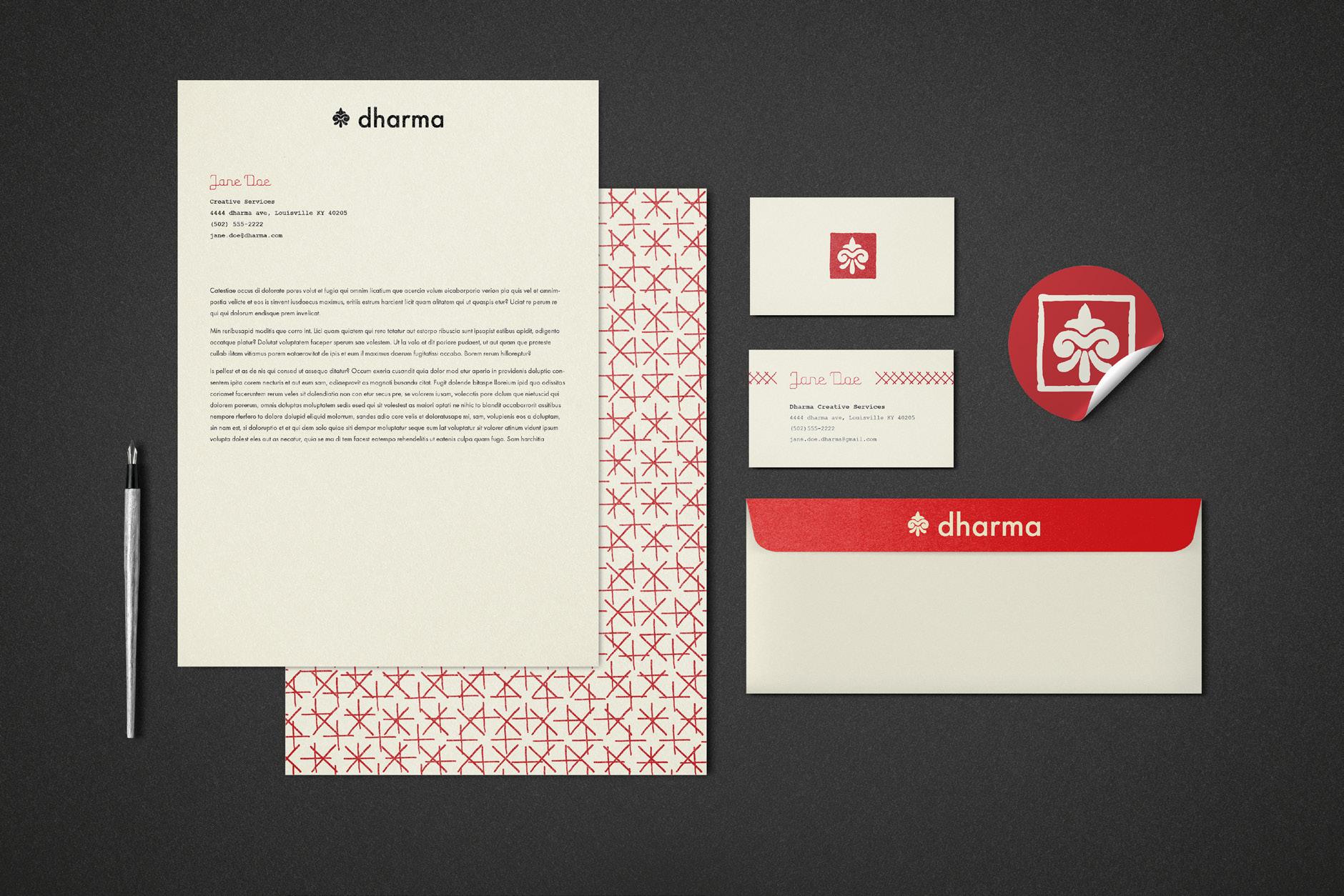 Dharma’s logos are inspired by Louisville’s fleur de lis, with a texture reminiscent of India’s woodblock printing.