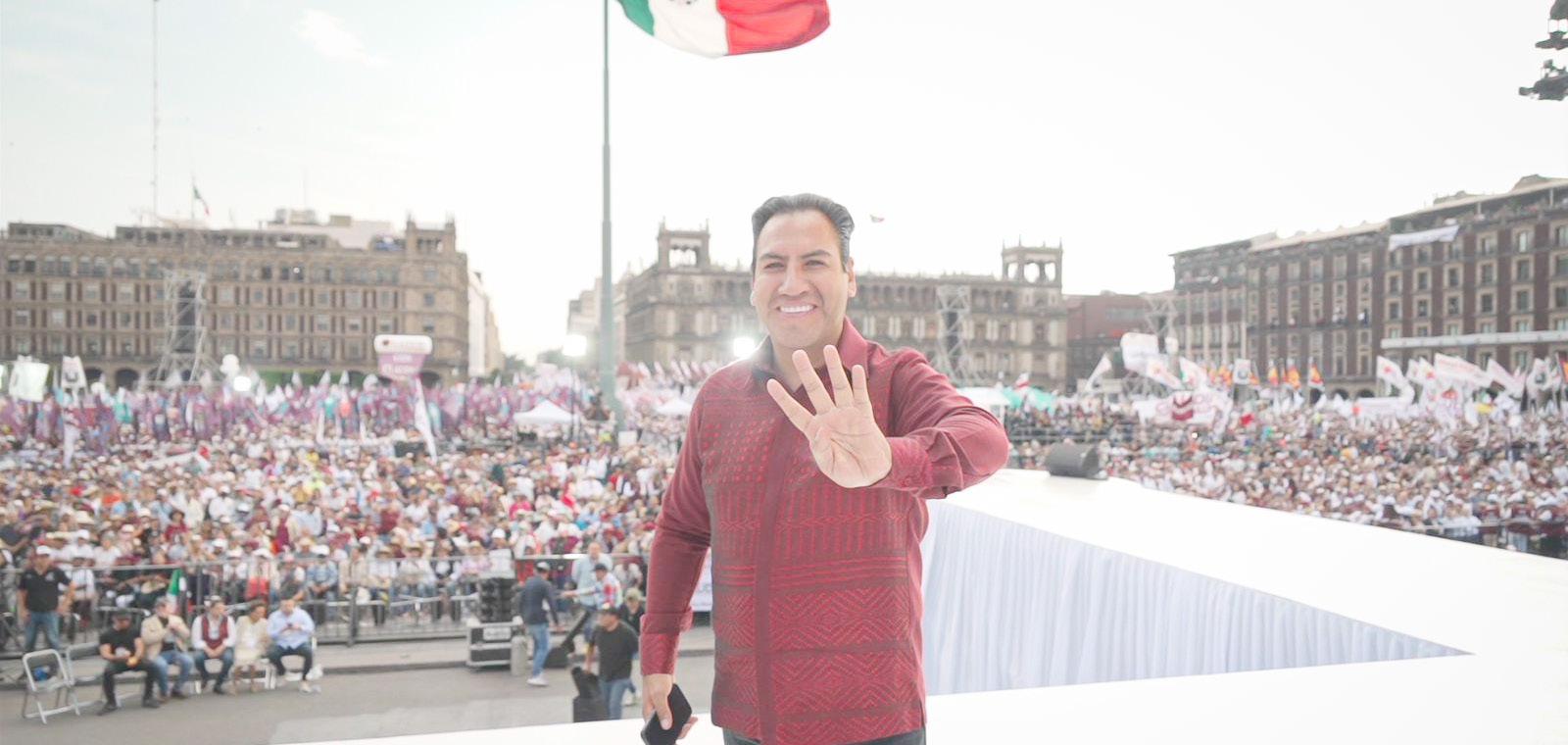 En su caminata hacia el Zócalo de la Ciudad de México, Eduardo Ramírez dijo: “Venimos rodeados del cariño, la certeza y la confianza que el pueblo ha depositado en el único proyecto que tiene como prioridad la prosperidad del país”.
