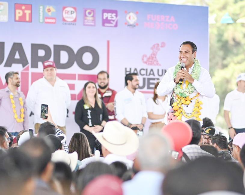 todo mi pensamiento, toda mi capacidad, toda la información que tengo, todo el diagnóstico de Chiapas que tengo va a ser una realidad y va a haber una transformación”. En ese marco, el candidato por la coalición “Sigamos Haciendo Historia en Chiapas”, reconoció al presidente de la República Andrés Manuel López Obrador y al gobernador del estado, Rutilio Escandón Cadenas, por ser dos grandes hombres, pioneros de la Cuarta Transformación, comprometidos con el pueblo de México y Chiapas. También acompañaron a Eduardo Ramírez, el presidente del Comité Ejecutivo Estatal de Morena, Carlos Molina Velasco; la secretaria general del Comité Ejecutivo Estatal del PVEM, Valeria Santiago Barrientos; el presidente del Comité Central Ejecutivo del partido Podemos Mover a Chiapas, Justo Tomás Hernández; el presidente del Comité Ejecutivo Estatal del Partido Chiapas Unido, Conrado Cifuentes Astudillo y la presidenta estatal del partido Fuerza por México, Janette Ovando Reazola.
