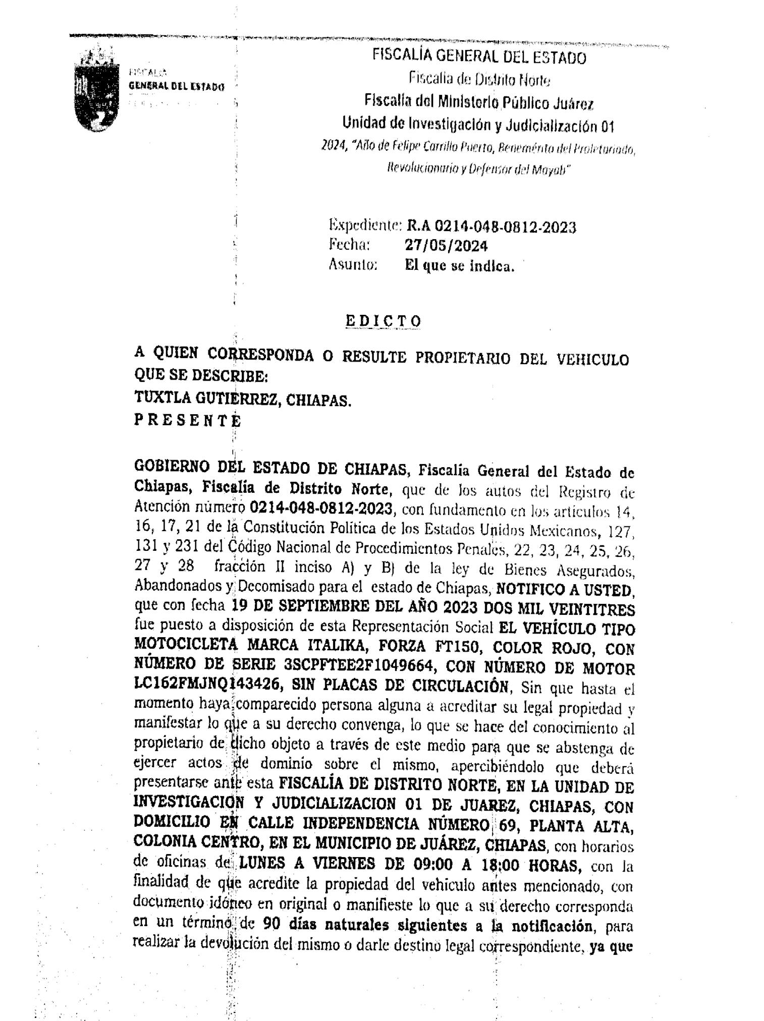 En audiencia, el Juez de Control de Tapachula, dictó la sen -