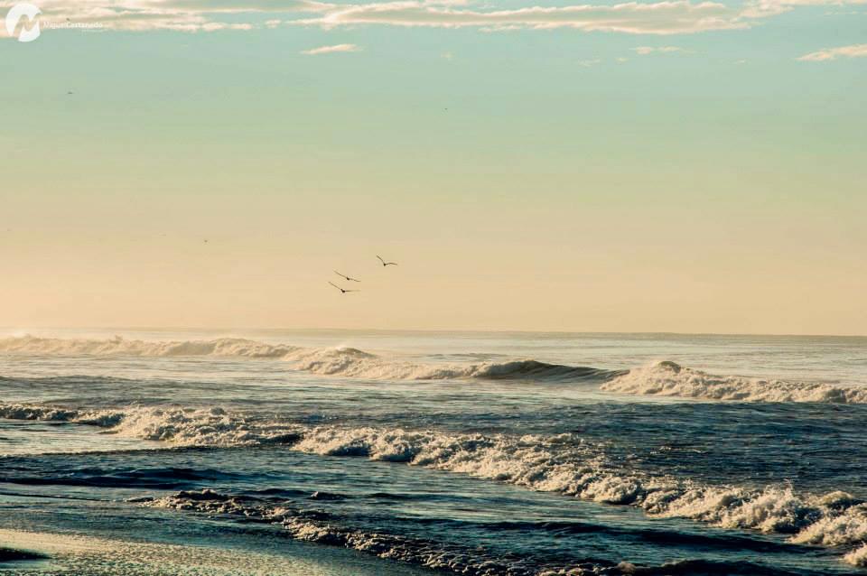 Un día de sesión de fotos en Puerto Arista, se me escapó hacerle este tiro al mar, a las aves y a los hermosos tonos de cielo.