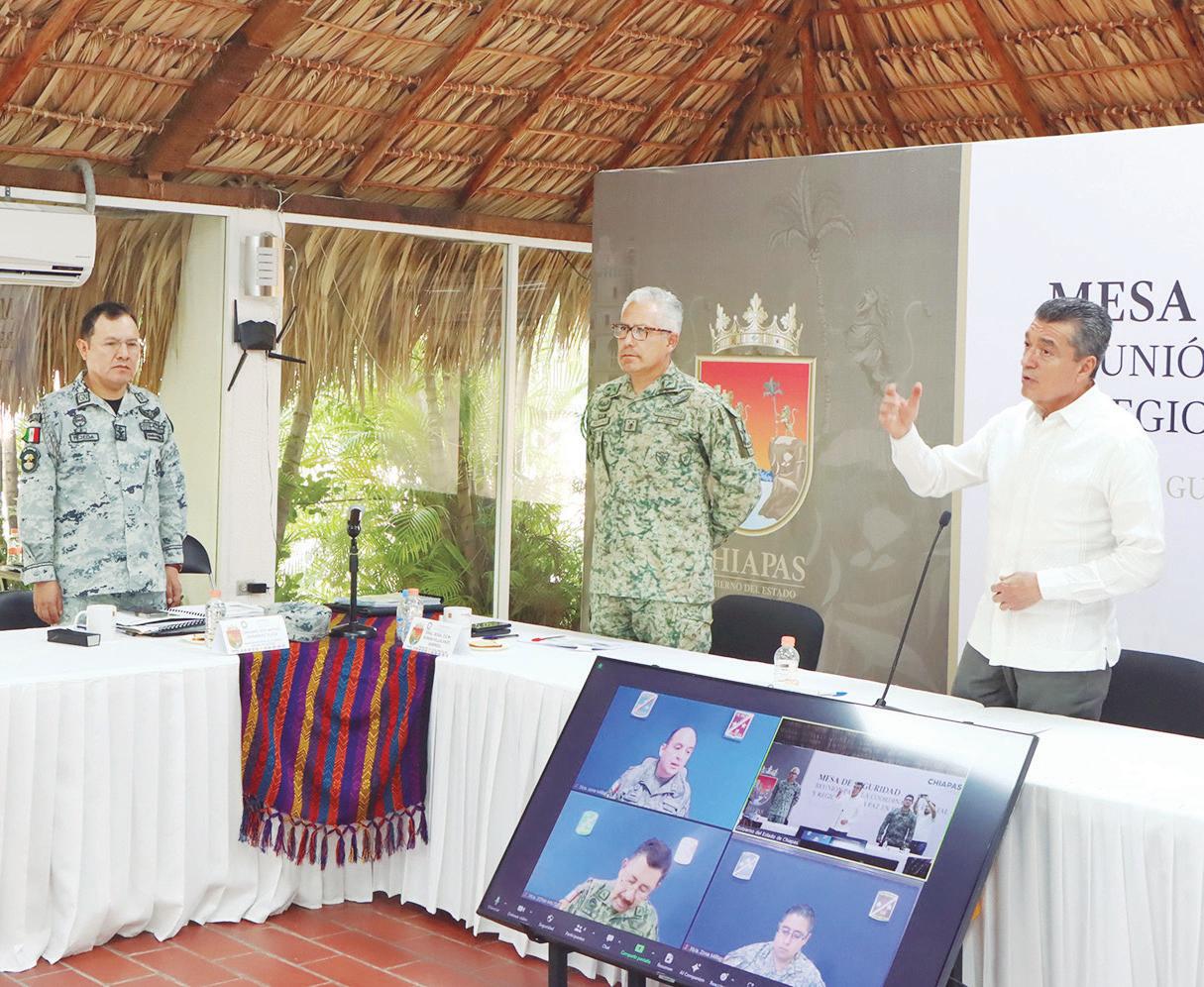 Tuxtla.- Desde la Mesa de Seguridad, el gobernador Rutilio Escandón Cadenas informó que, gracias a la importante fuerza de tarea integrada por el Ejército Mexicano, la Marina, la Guardia Nacional, las corporaciones policiacas e instituciones de protección civil de los tres niveles de gobierno, así como al apoyo solidario de los Comités Comunitarios de Protección Civil, en las últimas horas se logró combatir y liquidar 10 incendios forestales.
