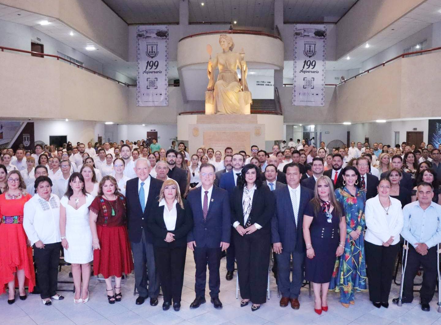 Tuxtla.- En el marco de las celebraciones del 199 Aniversario del Poder Judicial del Estado de Chiapas, el magistrado presidente del Tribunal Superior de Justicia y del Consejo de la Judicatura, Guillermo Ramos Pérez, encabezó la Entrega de Constancias a Notarias y Notarios Públicos Certificados en Meca -