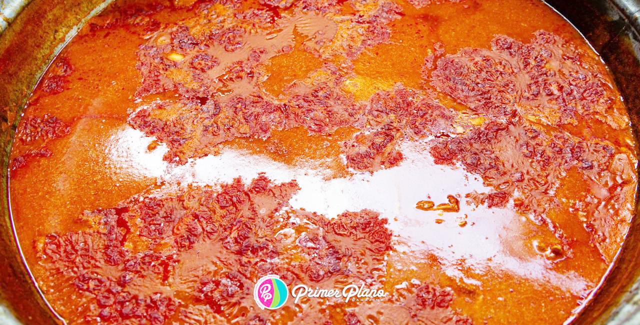 adelgazada con agua, que actúa como espesante y aporta una consistencia única al guiso, lo que da una cualidad muy identitaria de la gastronomía zoque.