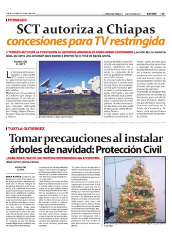 SCT autoriza a Chiapas concesiones para TV restringida :: TAMBIÉN AUTORIZÓ LA PRESTACIÓN DE SERVICIOS ADICIONALES COMO AUDIO RESTRINGIDO y servicio fijo de telefonía local, así como una concesión para acceso a internet fijo o móvil de banda ancha. REDACCIÓN EL SIE7E