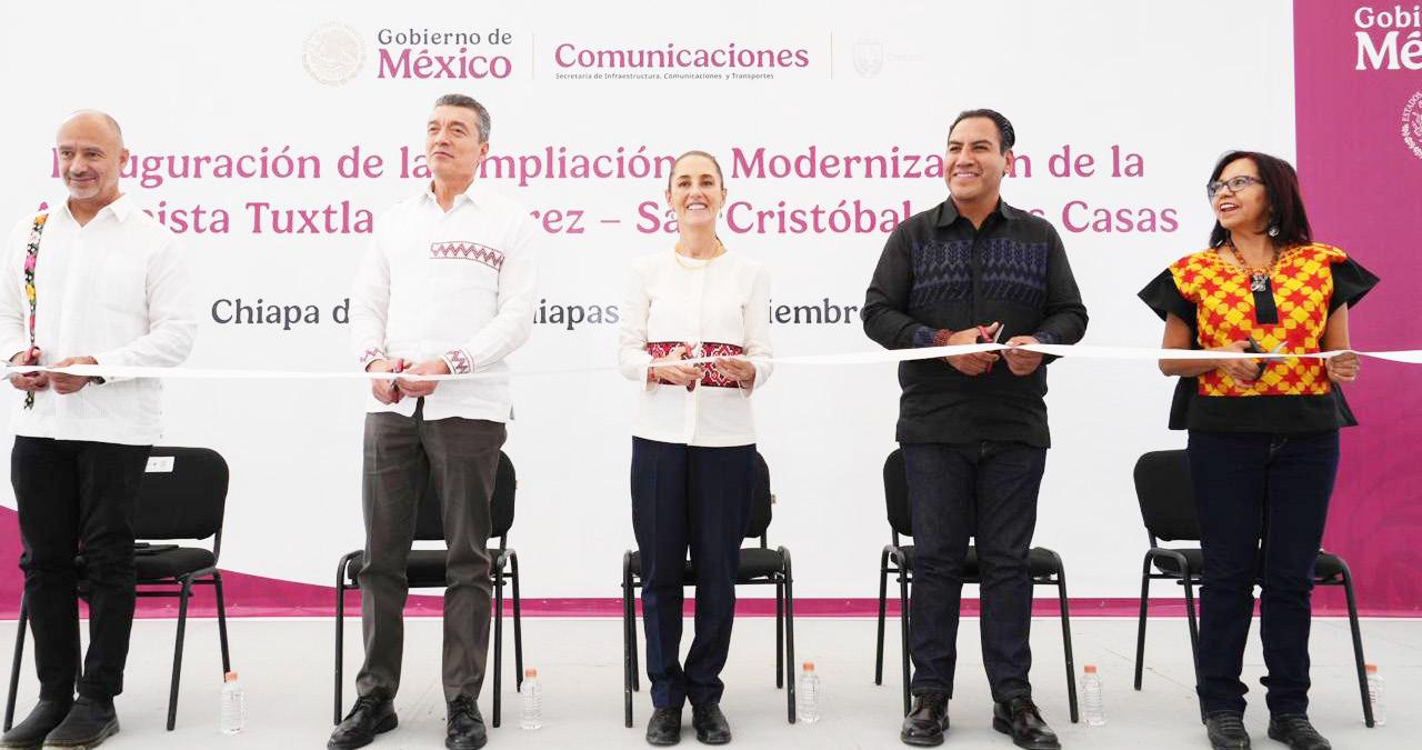 A la altura del kilómetro 15 de dicha vialidad, acompañada del gobernador Rutilio Escandón, el gobernador electo Eduardo Ramírez y otras personalidades del gobierno federal, cortó el listón inaugural de la vía, finalmente terminada. Explicó que un millón de habitantes se verán beneficiados con este proyecto, en una de las carreteras más transitadas diariamente, donde 30 de sus más de 40 kilómetros fueron ampliados a otro carril, así como la
