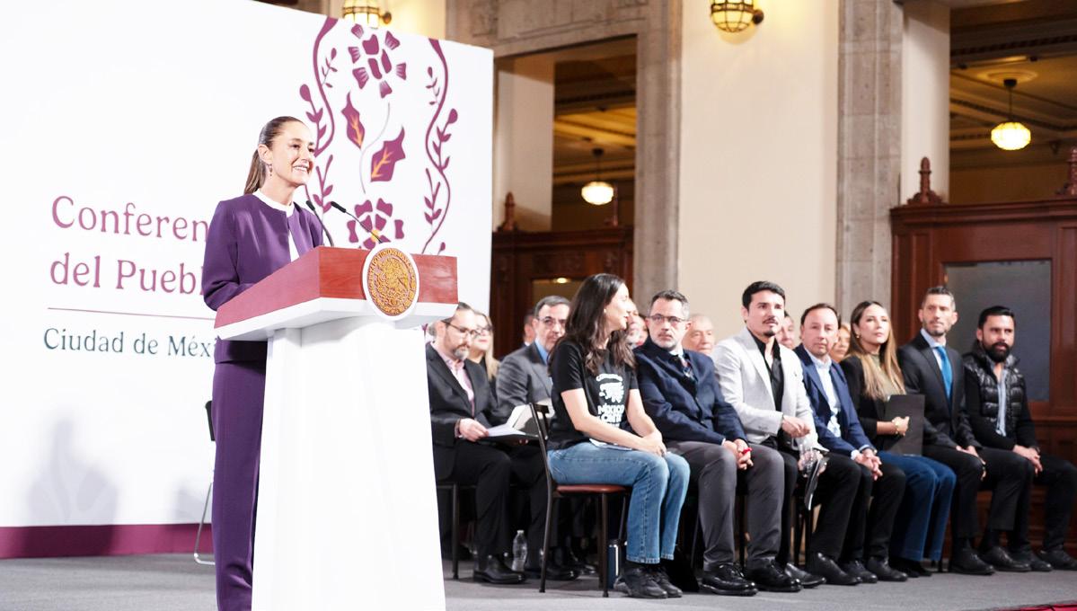 “Y el segundo objetivo es, dentro del Plan México, también traer parte de la industria creativa que hay en los Estados Unidos a nuestro país para promover esta actividad que a veces parece que es muy pequeña, pero es muy grande, y genera muchísimos empleos en Estados Unidos y queremos que mucho de eso también venga a nuestro país. Es una iniciativa de ambos lados de la frontera con empresarios, empresarias, artistas, muy diversos”, puntualizó. En la conferencia matutina: “La mañanera del pueblo”, explicó que el concurso binacional México canta por la paz y contra las adicciones se transmitirá por los medios públicos y surgió con la idea de construir una narrativa distinta a la música que hace apología de la violencia y para generar una identidad vinculada con el arte, la cultura, el deporte y con el acceso a derechos como la educación y al empleo. Además, de que se busca que en todas las escuelas públicas