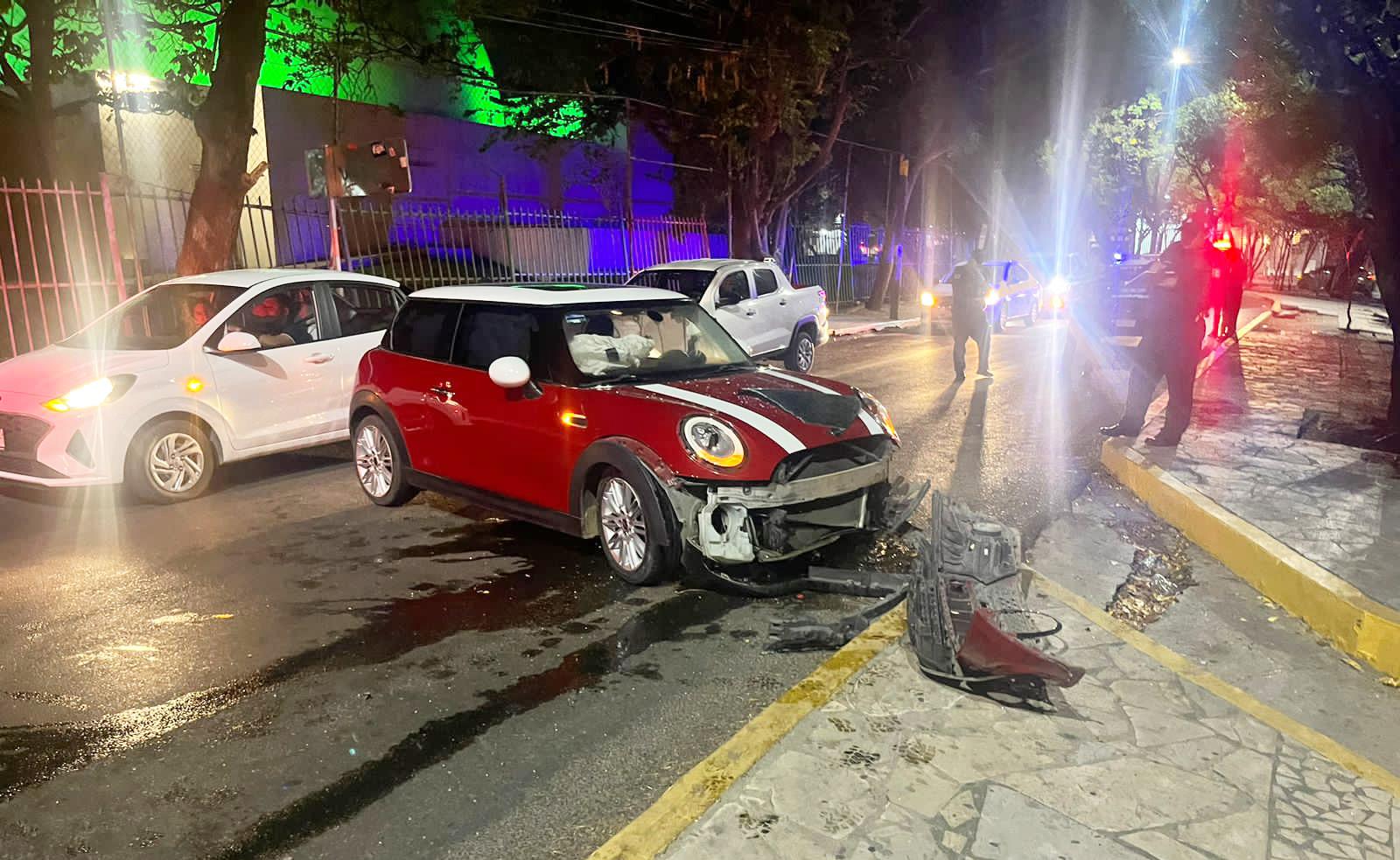 Se estrella Mini Cooper contra guarnición y deja daños cuantiosos