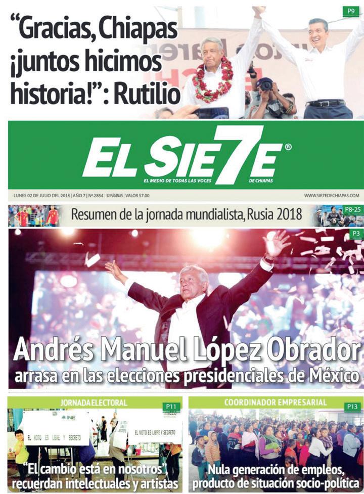El Sie7e es impreso y distribuido por El Sie7e de Chiapas de S.A de CV. Numero de Certificado de Reserva otorgado por el instituto Nacional de Derechos de Autor: 04-2021-092016494100-101. Número de Certificado de Licitud de Título y Certificado: 16746.
