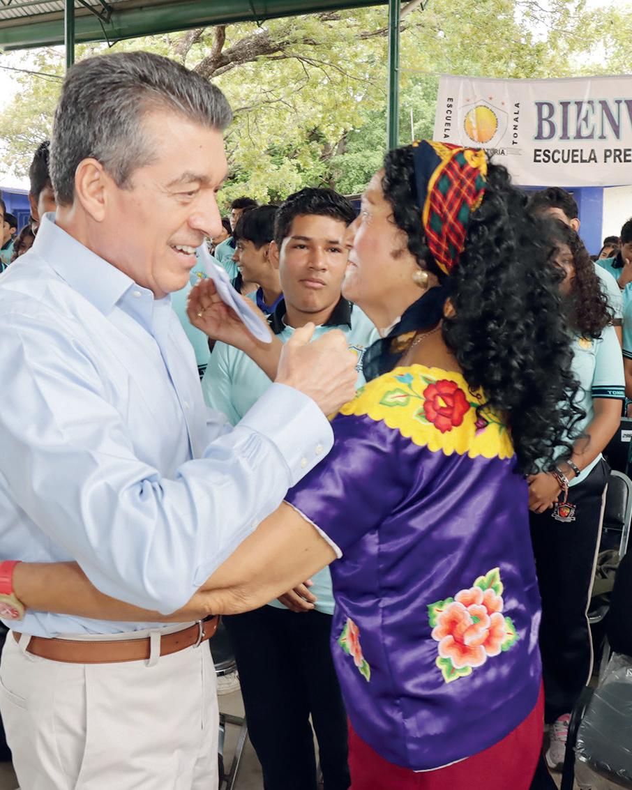 “Trabajamos e invertimos en materia educativa porque nuestro mayor deseo es que la niñez y juventud no estén en las calles sino en las escuelas. En otros gobiernos no apoyaban a las y los jóvenes, pero hoy destinamos todo lo necesario para que estudien y cuenten con mejores oportunidades que les permita salir adelante, pues eso abonará al progreso de Chiapas y México”, apuntó. Escandón Cadenas informó que en el municipio de Tonalá, en esta administración, se han invertido más 80 millones de pesos en acciones de construcción, rehabilitación y equipamiento de planteles escolares, además se han destinado más