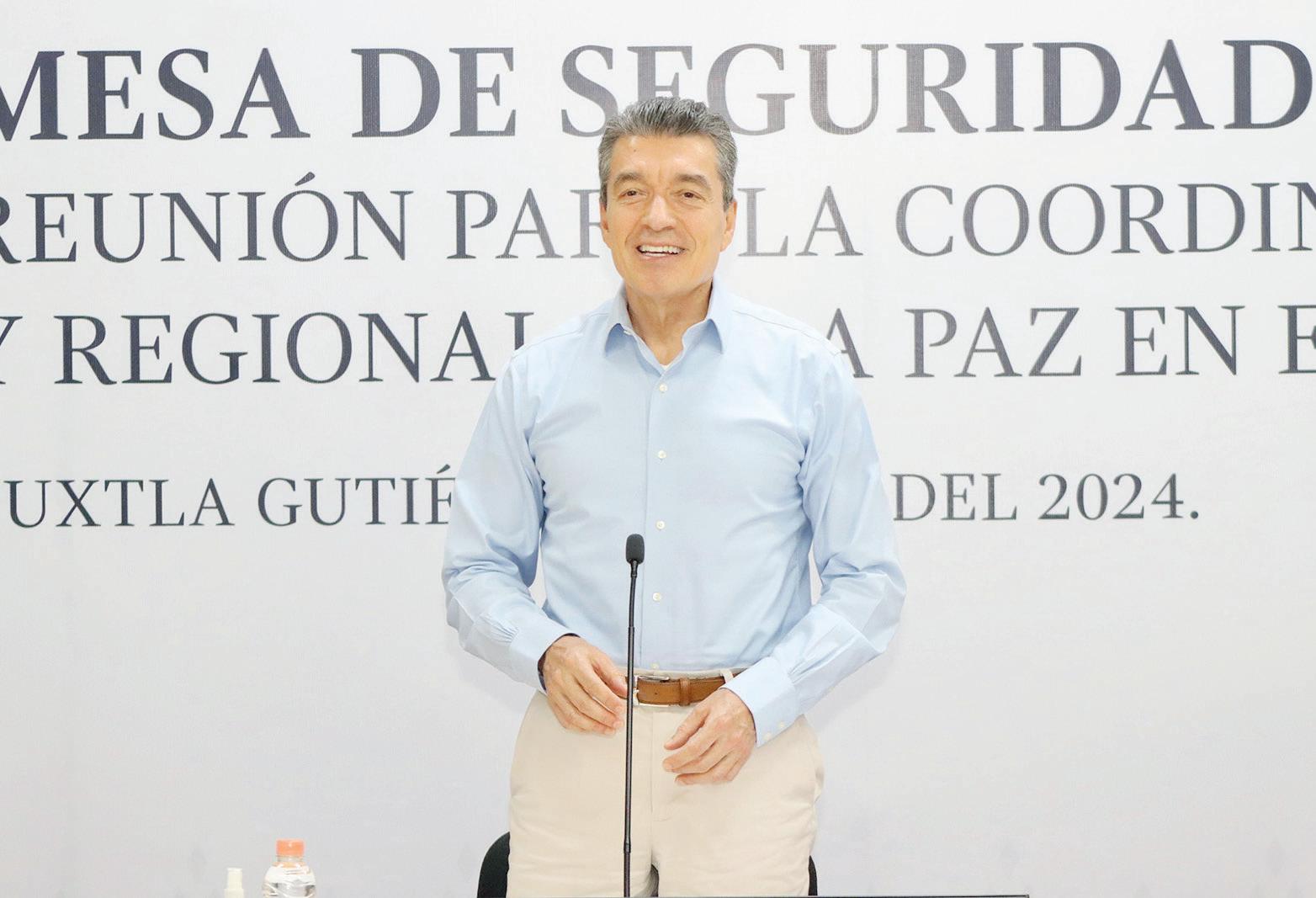 Tuxtla.- En la Mesa de Coordinación Estatal para la Construcción de la Paz y la Seguridad, el gobernador Rutilio Escandón Cadenas informó que, de acuerdo con el pronóstico meteorológico, van a continuar las lluvias este fin de semana, por lo que insistió en el llamado a la población a cuidarse, extremar precauciones y atender las recomendaciones preventivas.
