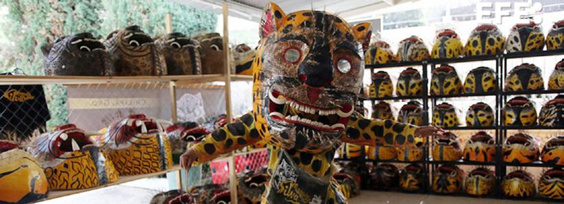 En el atuendo, que es más similar a un jaguar, destacan las máscaras con grandes colmillos y espejos en lugar de ojos; las más grandes y elaboradas llegan a pesar hasta 30 kilogramos de acuerdo con varios participantes.
