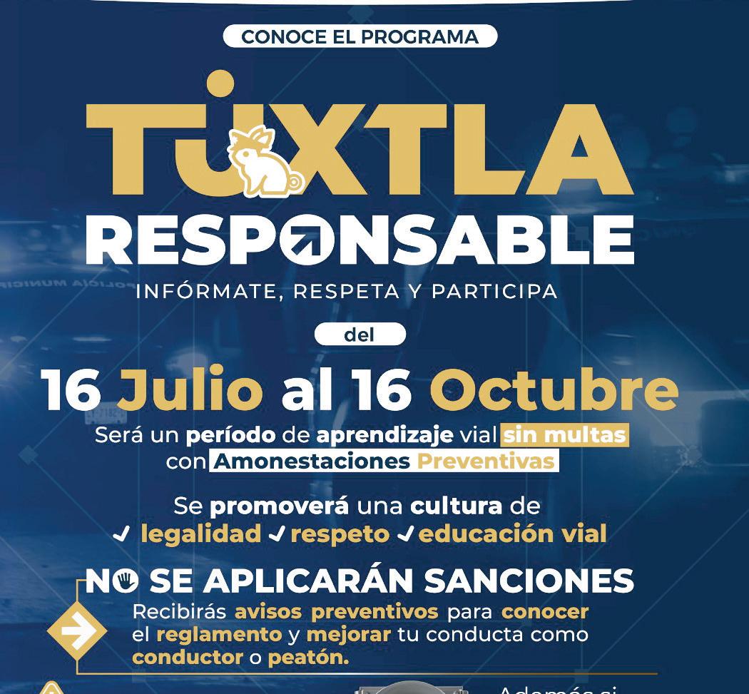 Con “Tuxtla Responsable”, el Gobierno Municipal refrenda su compromiso con una ciudad más ordenada, segura y solidaria, fomentando la participación ciudadana y el respeto al reglamento vial como pilares de una mejor convivencia para todas y todos.