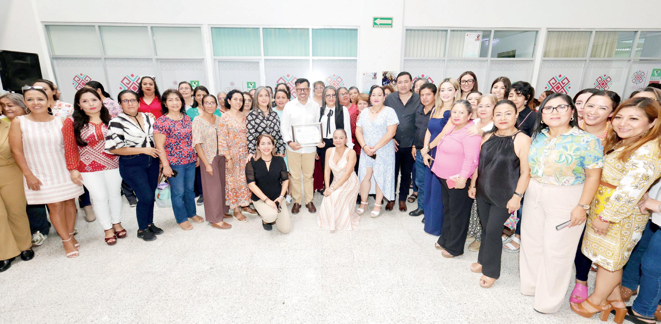 dicatos Unidos del Congreso del Estado, María Albores Trujillo y Guadalupe A. Flores Constantino, entregaron un reconocimiento al presidente de la Junta de Coordinación Política por su vocación