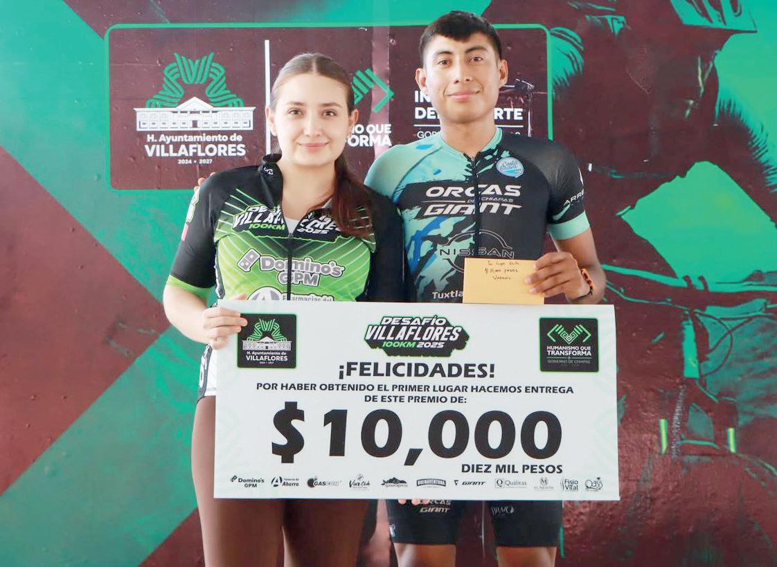 reto que implicó la ruta y el cálido recibimiento de las comunidades. El público de varios ejidos de Villaflores disfrutó de un espectáculo deportivo de gran nivel, consolidando al “Desafío Villaflores” como una de las pruebas ciclistas más atractivas y prometedoras de la región. Se agradece el patrocinio de Buenaventura, Dominos GPM Farmacias del Ahorro, Aseguradora Qualitas, Oasis de los Frailes, Red Natura Vive Club, Gas Com, El Mesón Giant, Fisio Vital, Gaso Express. En la ceremonia de premiación la alcaldesa Valeria Rosales Sarmiento encabezó la entrega de premios. Resultados oficiales — Desafío Villaflores 2025