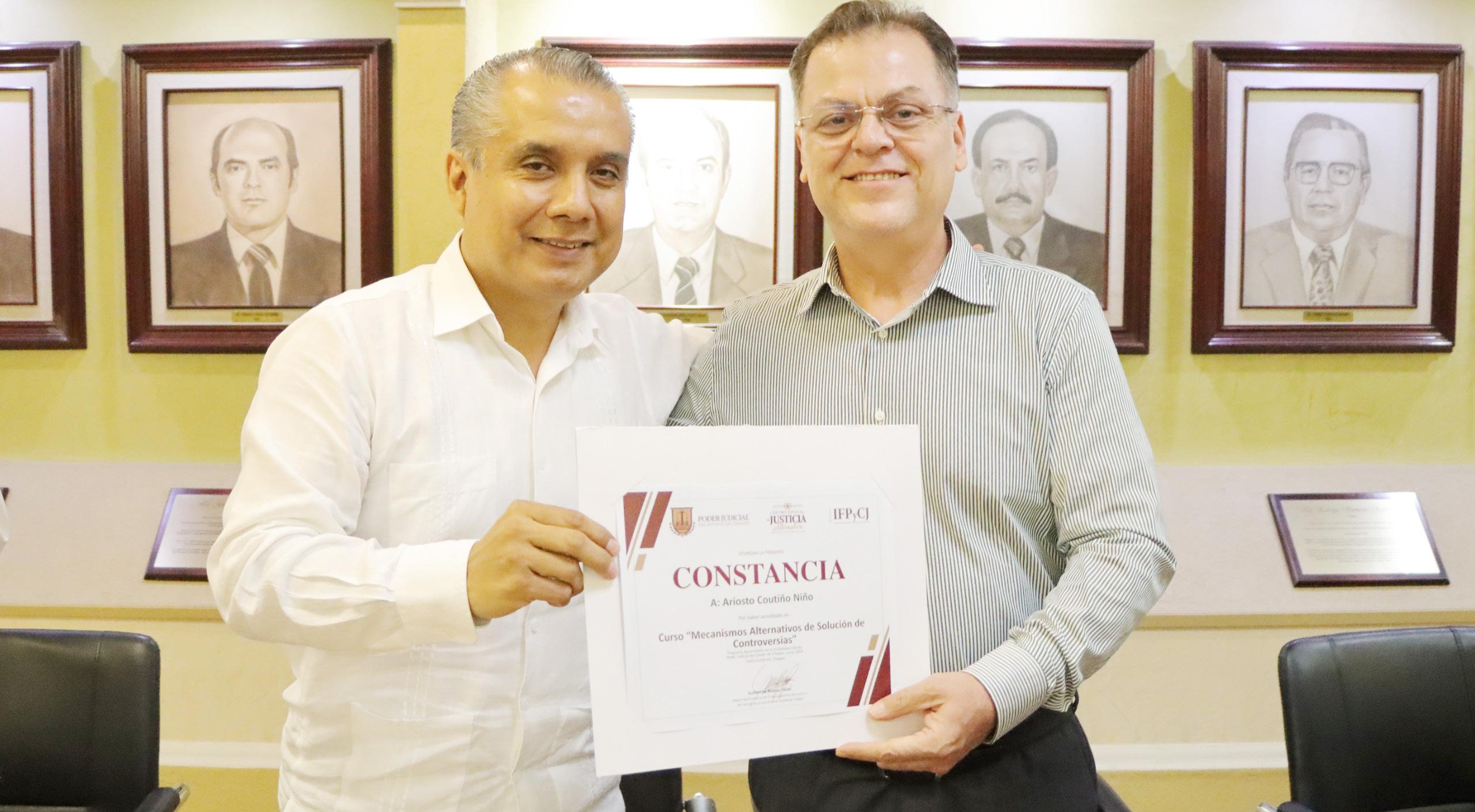 Tuxtla.- El Poder Judicial del Estado de Chiapas, que encabeza el magistrado presidente del Tribunal Superior de Justicia y del Consejo de la Judicatura del Estado, Guillermo Ramos Pérez, clausuró el curso denominado: Mecanismos Alternativos de Solución de Controversias, realizado en el marco del convenio de colaboración, signado entre esta casa de la justicia y la Comisión Estatal de Conciliación y Arbitraje Médico de Chiapas (CECAM Chiapas). Teniendo como sede la Sala de Presidentes del Palacio de Justicia de Tuxtla Gutiérrez, durante el acto de clausura, el magistrado presidente Guillermo Ramos destacó la importancia de fortalecer la Justicia Alternativa dentro del trabajo interinstitucional en beneficio de la ciudadanía, principalmente por el impacto que tendrá dentro del nuevo Código Nacional de Procedimientos Civiles y Familiares.