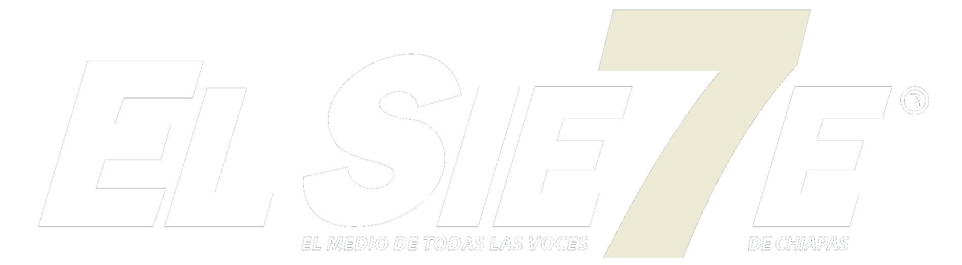 El Sie7e es impreso y distribuido por El Sie7e de Chiapas de S.A de CV. Numero de Certificado de Reserva otorgado por el instituto Nacional de Derechos de Autor: 04-2021-092016494100-101. Número de Certificado de Licitud de Título y Certificado: 16746.