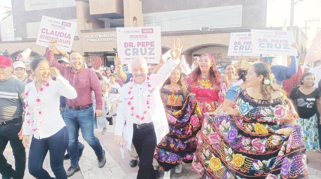 Tonalá.- El Dr. Pepe Cruz, Pepe Cruz candidato al Senado la República por el partido morena, se reunió este día con el pueblo de Tonala, y desde ahí se pronunció por aprobar reformas que mantengan el incremento de la pensión a los adultos mayores y los programas sociales que beneficien a los que menos tienen. El aspirante al Senado de la República dejó en claro que el proyecto de transformación cabemos todas y todos, sin dejar a nadie atrás ni afuera., remarcó el candidato. En un evento de campaña que inició desde la sirena y concluyó en el parque la Esperanza anunció que tiene el compromiso que desde el Senado de la República impulsará mejorar las condiciones de vida del