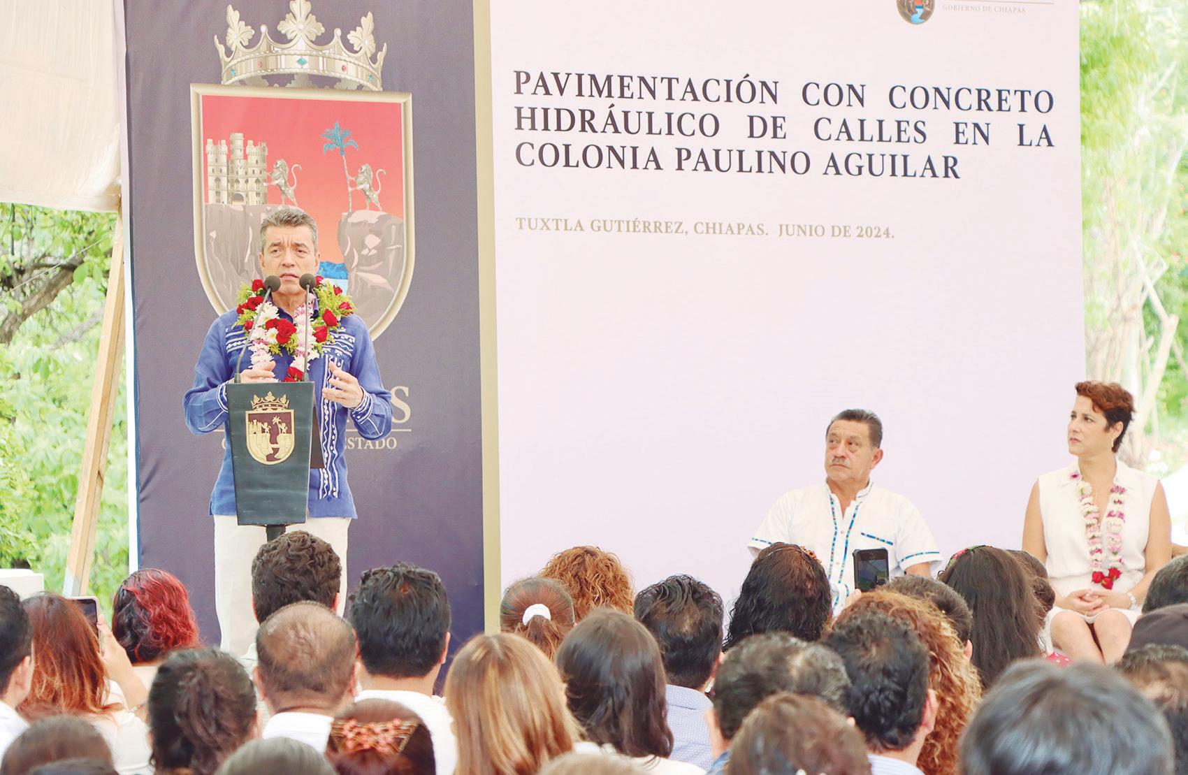 Tuxtla.- En la inauguración de calles de la colonia Paulino Aguilar en Tuxtla Gutiérrez, el gobernador Rutilio Escandón Cadenas mencionó que la construcción de vialidades mejora la movilidad y la seguridad, además de dar plusvalía al patrimonio de la gente, por ello, a través de estas obras en las colonias se está haciendo una diferencia en la capital chiapaneca.
