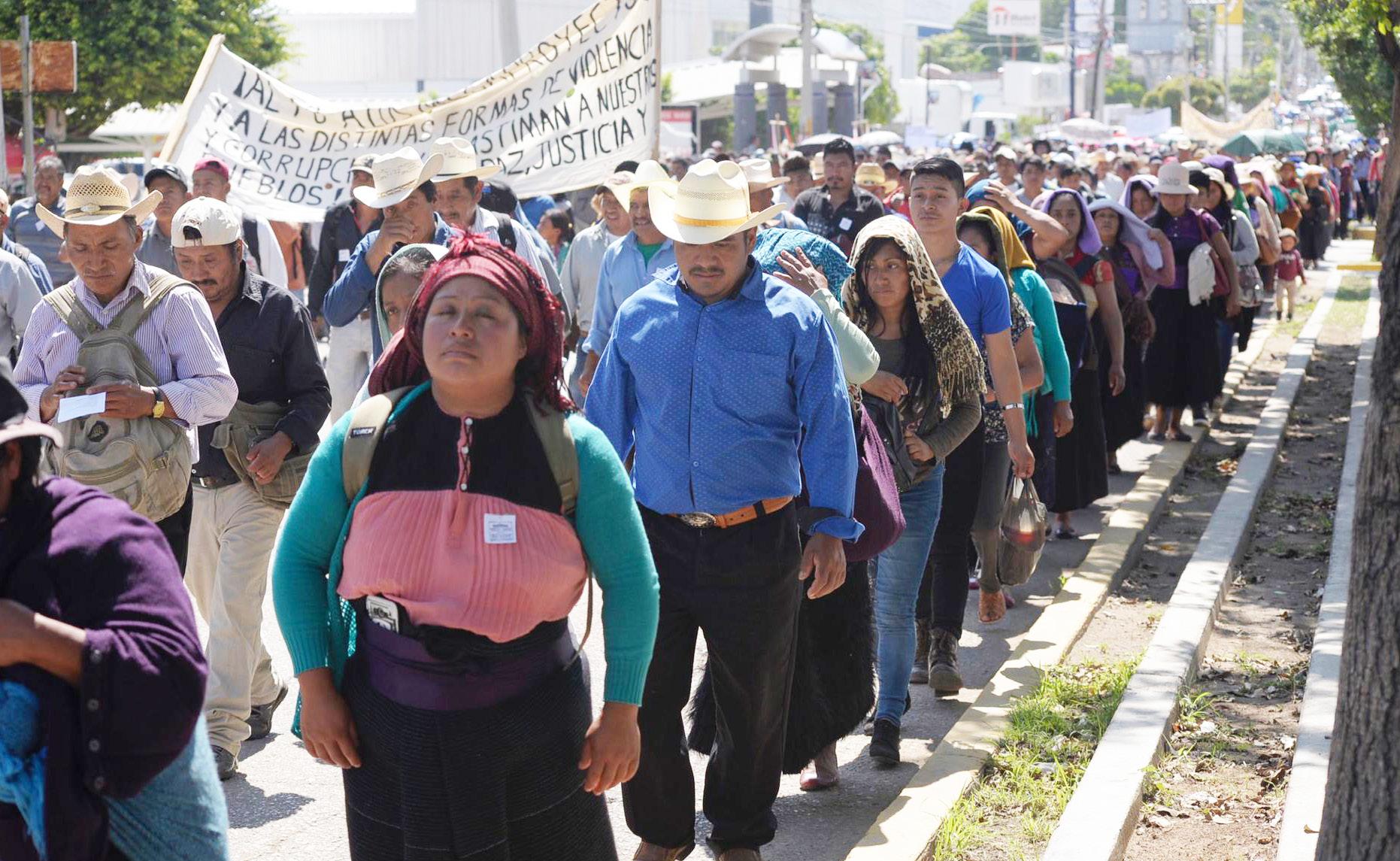 Tuxtla.- Desplazados por la violencia en la comunidad Santa Martha, municipio de Chenalhó, marcharon este miércoles por la mañana en las calles tuxtlecas para exigir a las autoridades que los apoyen, debido a que están cansados de comer “puro arroz y sardina”.
