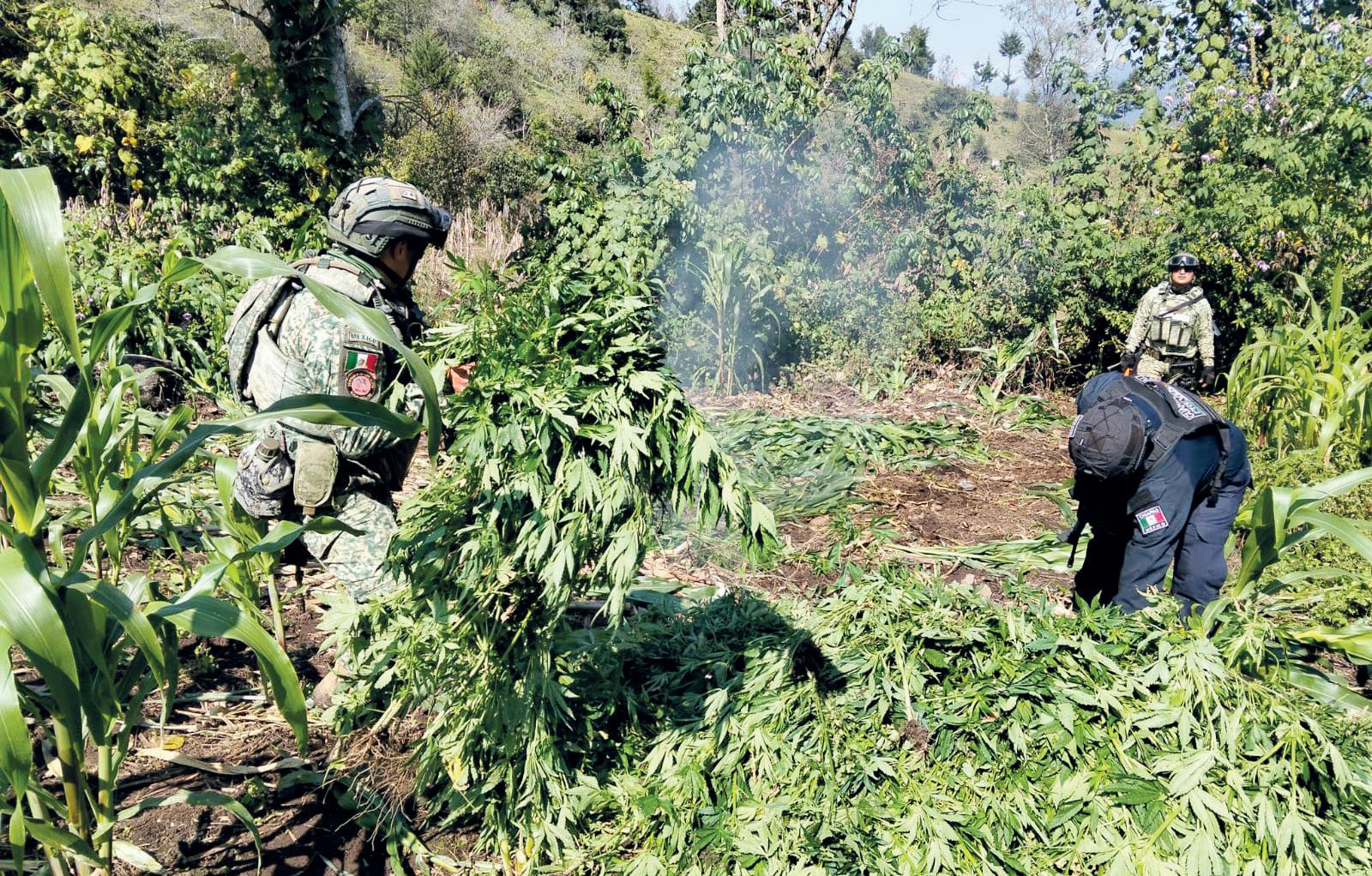 Tuxtla.- Elementos de la Guardia Nacional, en coordinación con personal del Ejército Mexicano y autoridades de los tres órdenes de gobierno, localizaron y destruyeron cuatro plantíos de marihuana en el municipio de Santiago El Pinar, en el estado de Chiapas.