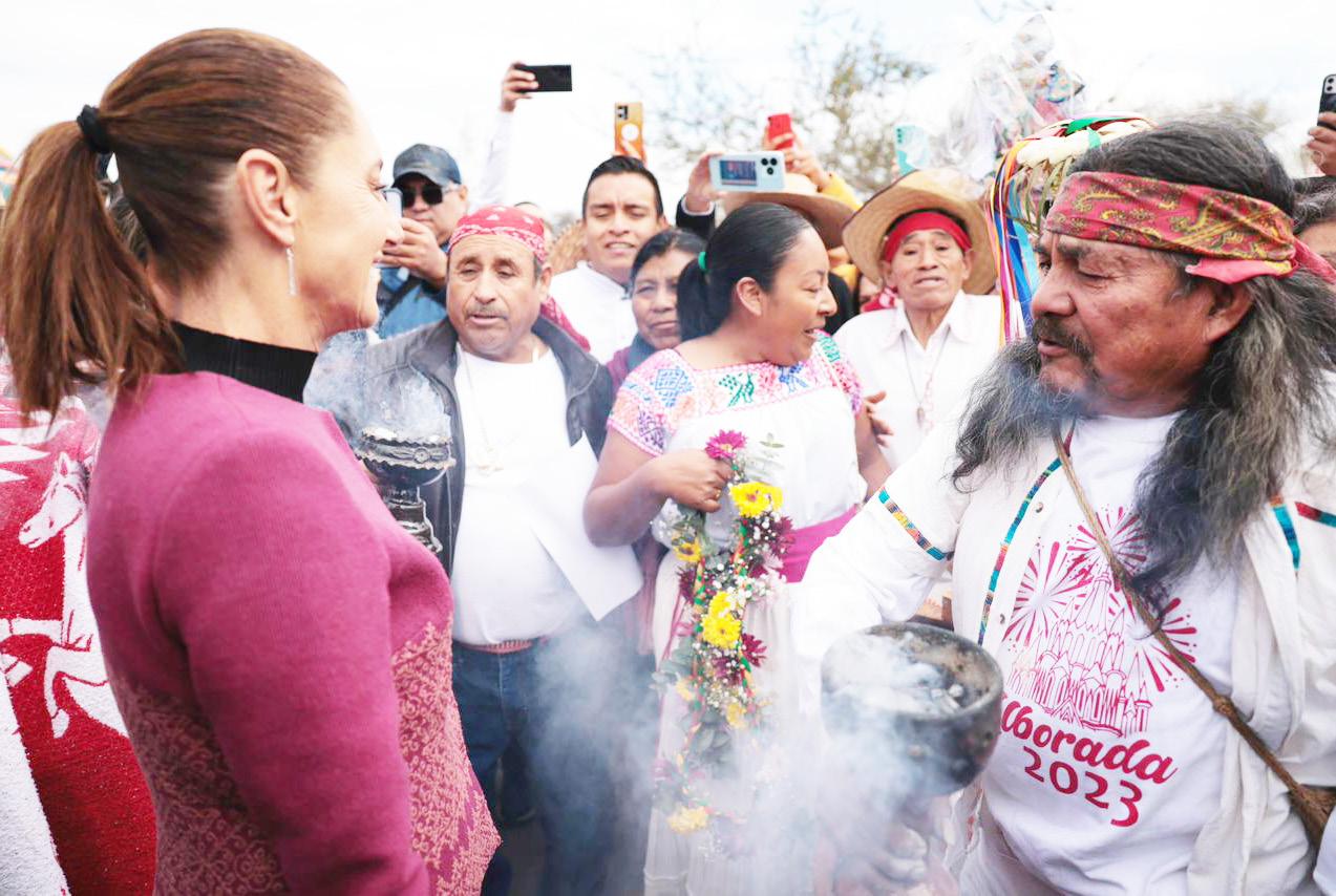 Detalló que el Plan de Justicia de los Pueblos Chichimeca y Otomí en Guanajuato y Querétaro incluye también la recuperación de la Capilla del Puerto de Calderón, la construcción de cinco comedores escolares, el Encuentro de Parteras en el nuevo Centro de Excelencia de Partería y Bienestar; 712 derechohabientes del programa Jóvenes Construyendo el Futuro, y entrega de mil 123 apoyos de vivienda; enfatizó que está pendiente el decreto y catálogo de lugares sagrados, restauración de capillas familiares y coecillos; atención sobre certeza jurídica de tenencia de la tierra; el reconocimiento de tierras ancestrales, dotación de agua potable, continuidad del programa Sembrando Vida, Gasolineras del Bienestar y anunció la inclusión de nuevos caminos artesanales, cuyo recurso se duplicará este año para todo el país.